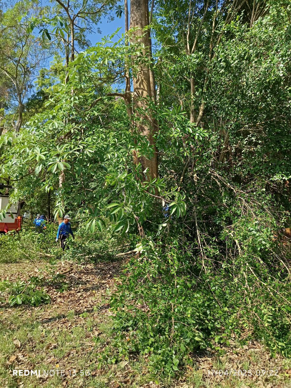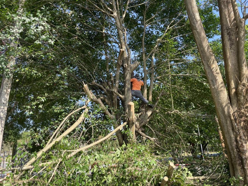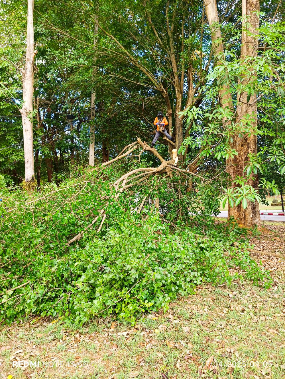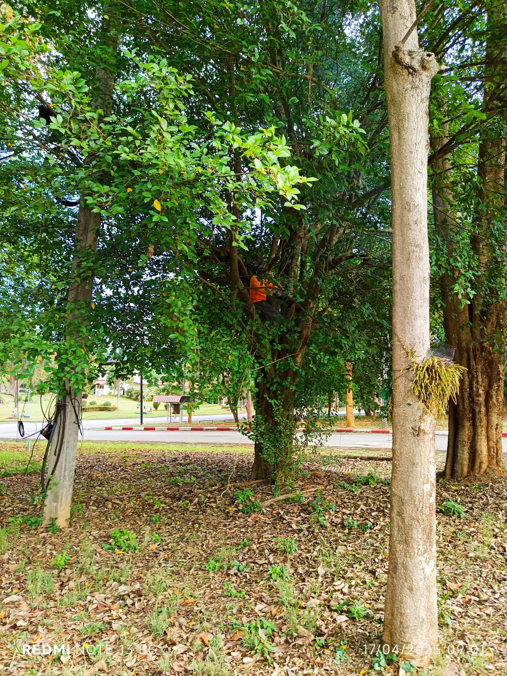 ตัดกิ่งไม้แนวสายไฟข้างอาคารบริหารงานกลางและเก็บรวบสายสื่อสาร