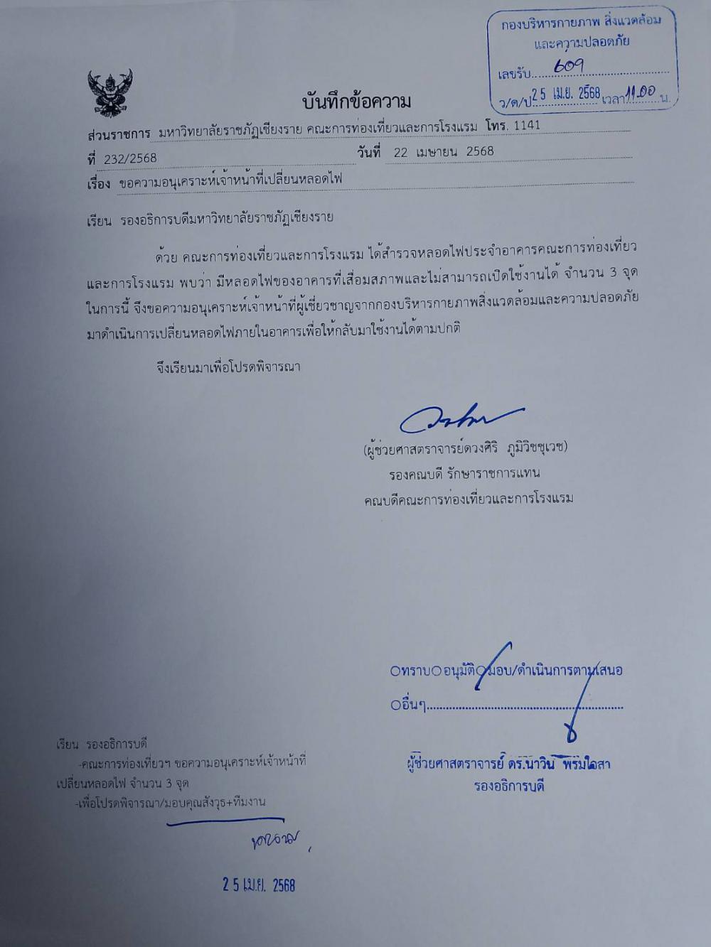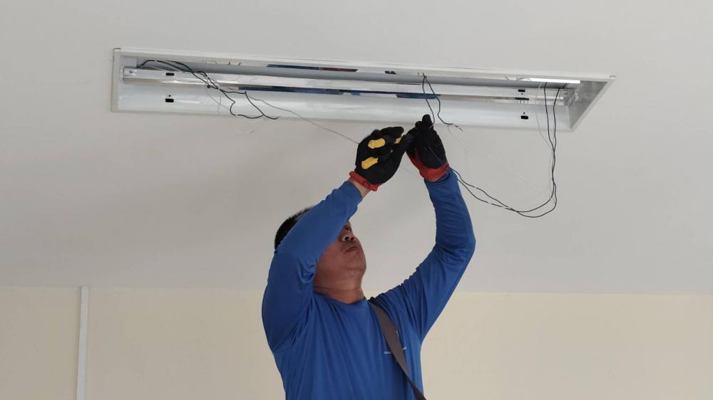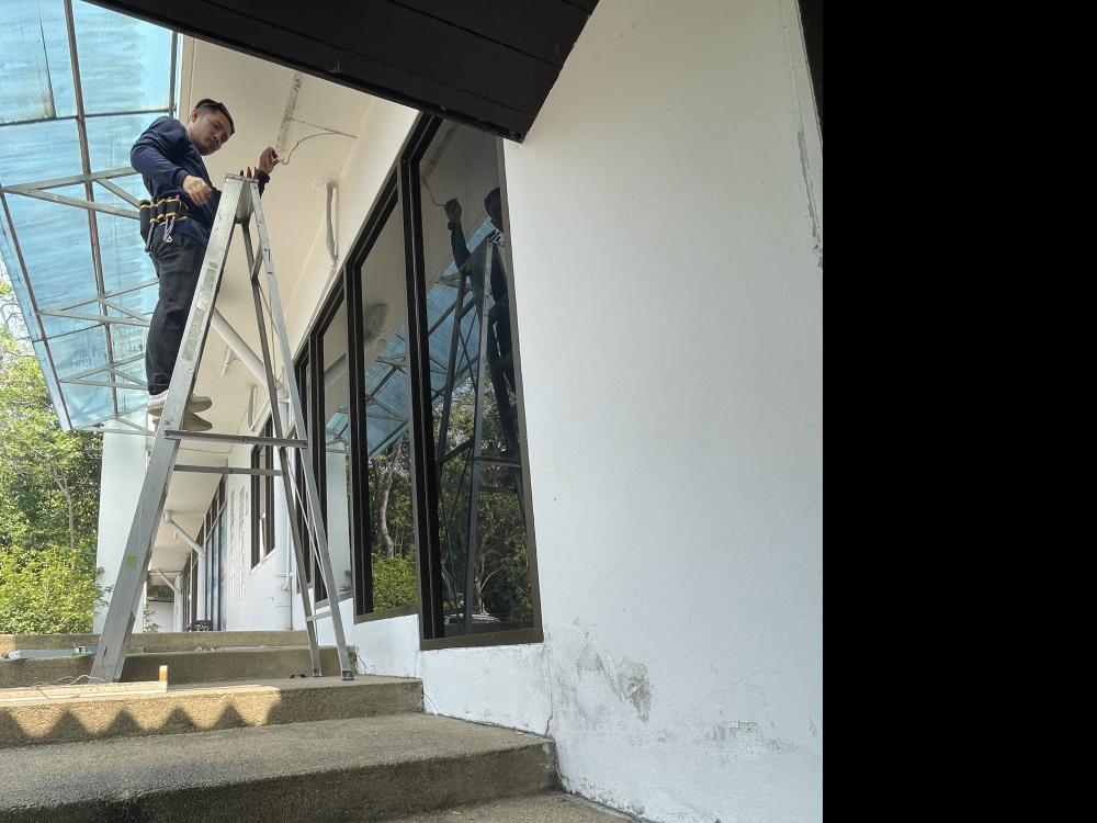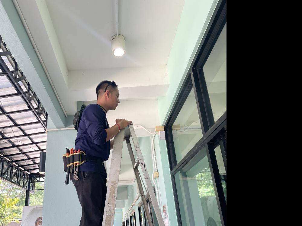 คณะการท่องเที่ยวฯ ติดตั้งทามเมอร์ไฟหน้าอาคารและเปลี่ยนหลอดไฟรอบอาคารท่องเที่ยว