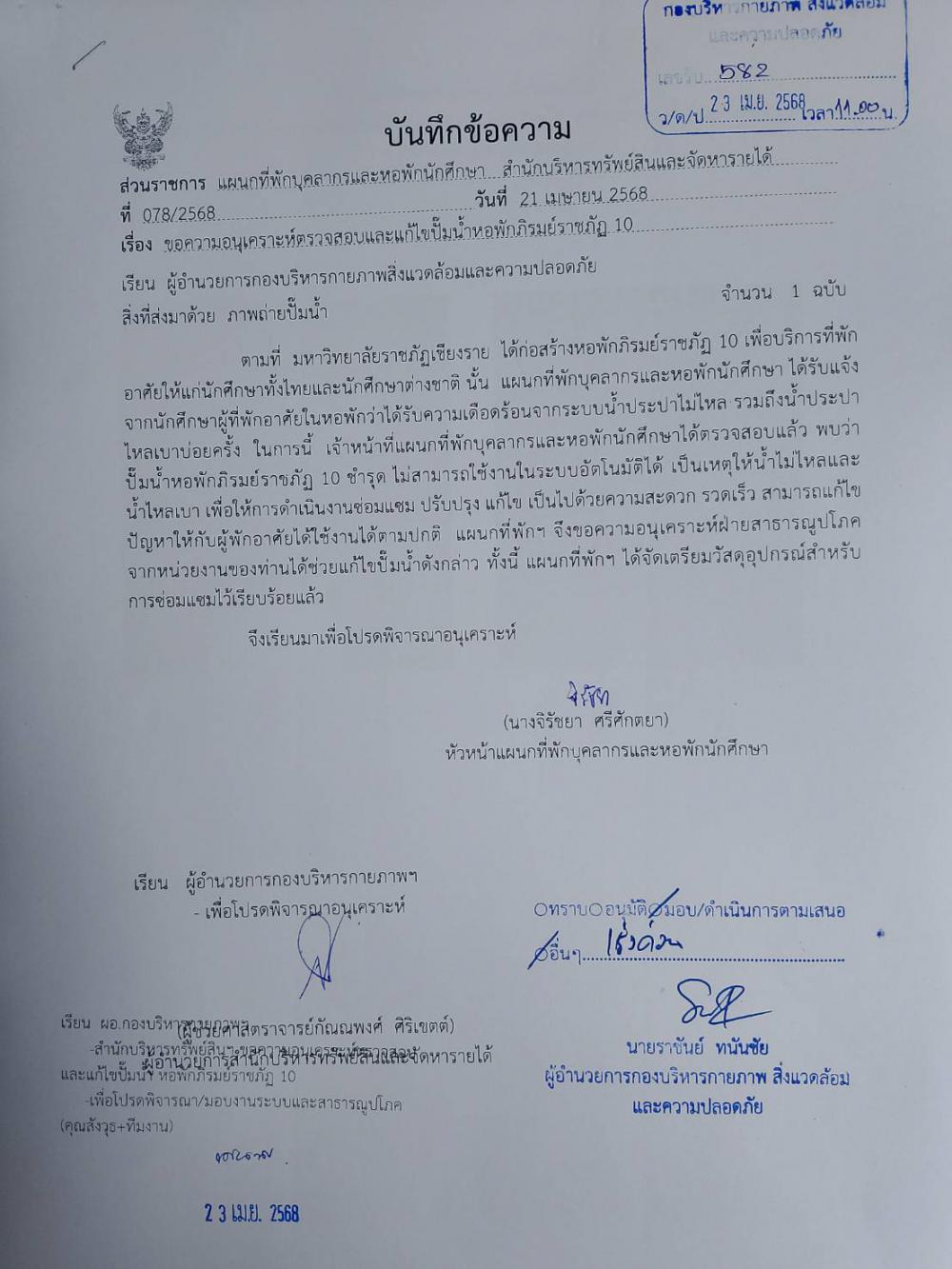 จัดการทรัพย์สิน-หอพัก แก้ไขปั๊มน้ำหอพักภิรมย์ราชภัฏ 10 และทางหน่วยงานได้ทำการจัดเตรียมวัสดุอุปกรณ์สำหรับการซ่อมแซมไว้เรียบร้อยแล้ว