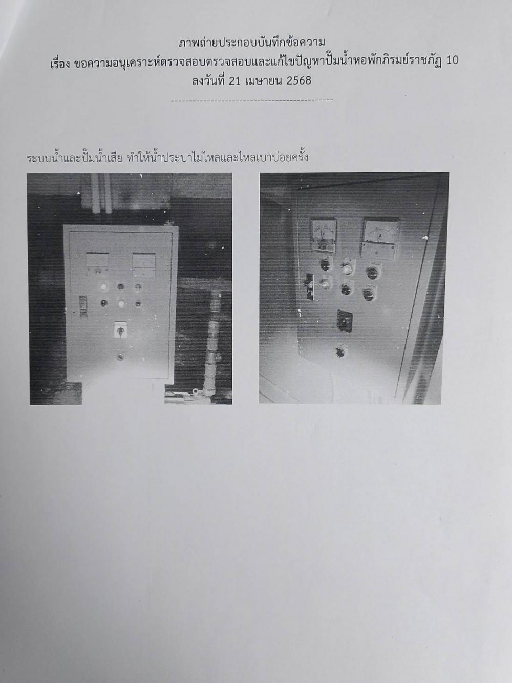 ตรวจสอบและแก้ไขปั๊มน้ำหอพักภิรมย์ราชภัฏ 10