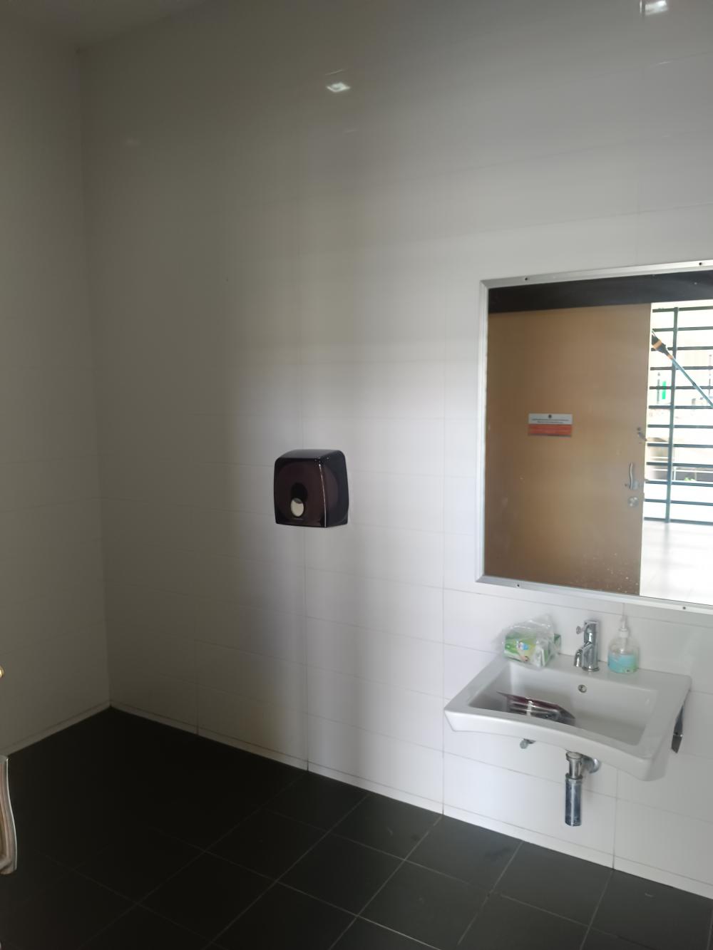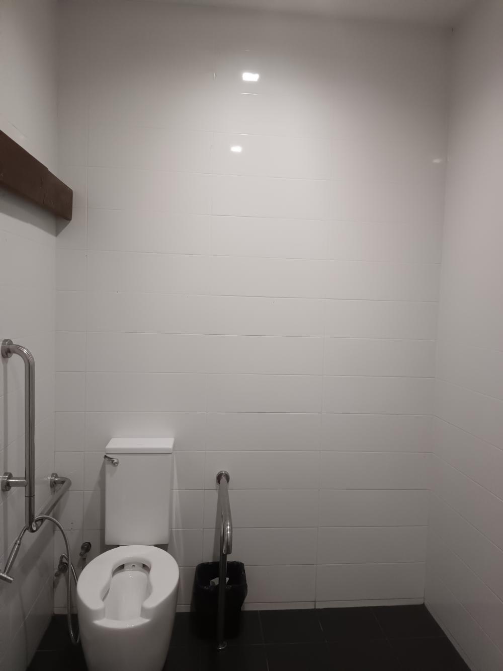 กองกลาง ห้องน้ำชาย - มีน้ำรั่วบริเวณสต๊อบวาล์ว จำนวน 3 ห้อง - แสงสว่างภายในห้องน้ำไม่เพียงพอ ห้องน้ำคนพิการ - ชักโครกกดไม่ลง แจ้งว่า ตรงที่กดเสีย
