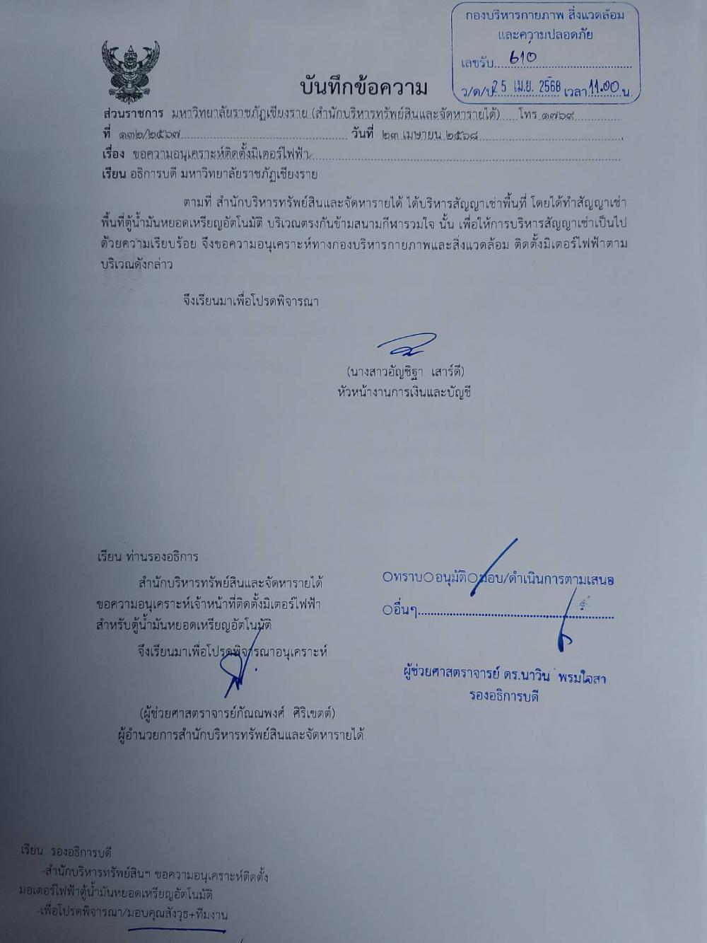 สำนักบริหารทรัพย์สินฯ ติดตั้งมิเตอร์ไฟฟ้า บริเวณตรงข้ามสนามกีฬารวมใจ สำหรับตู้น้ำมันหยอดเหรียญ