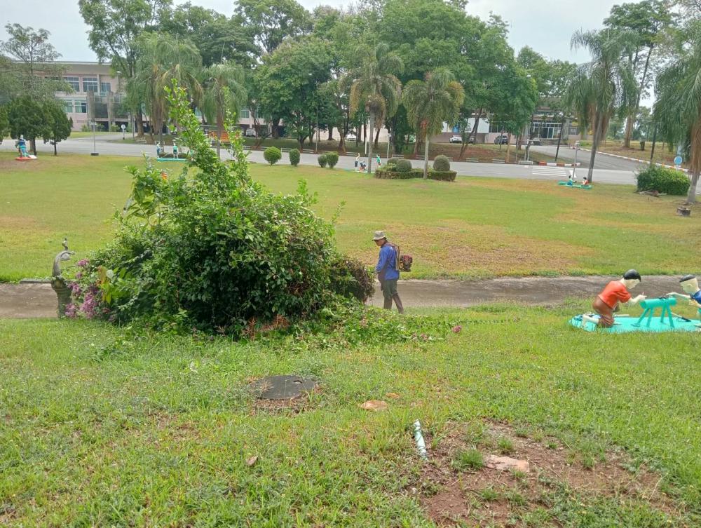 ตัดแต่งต้นไม้บริเวณศูนย์การเรียนรู้ตลอดชีวิต