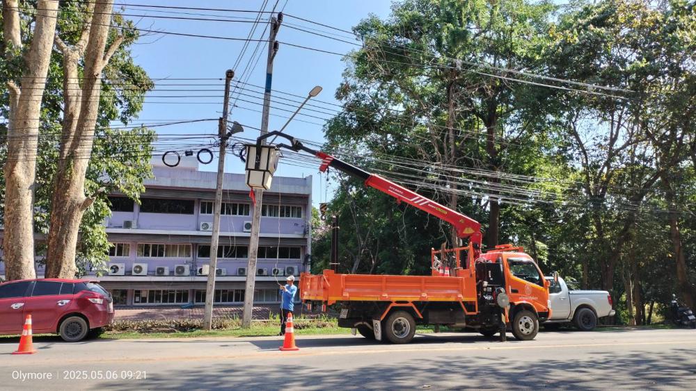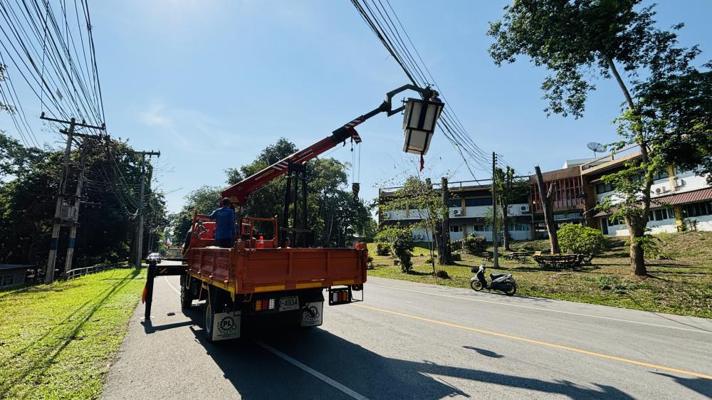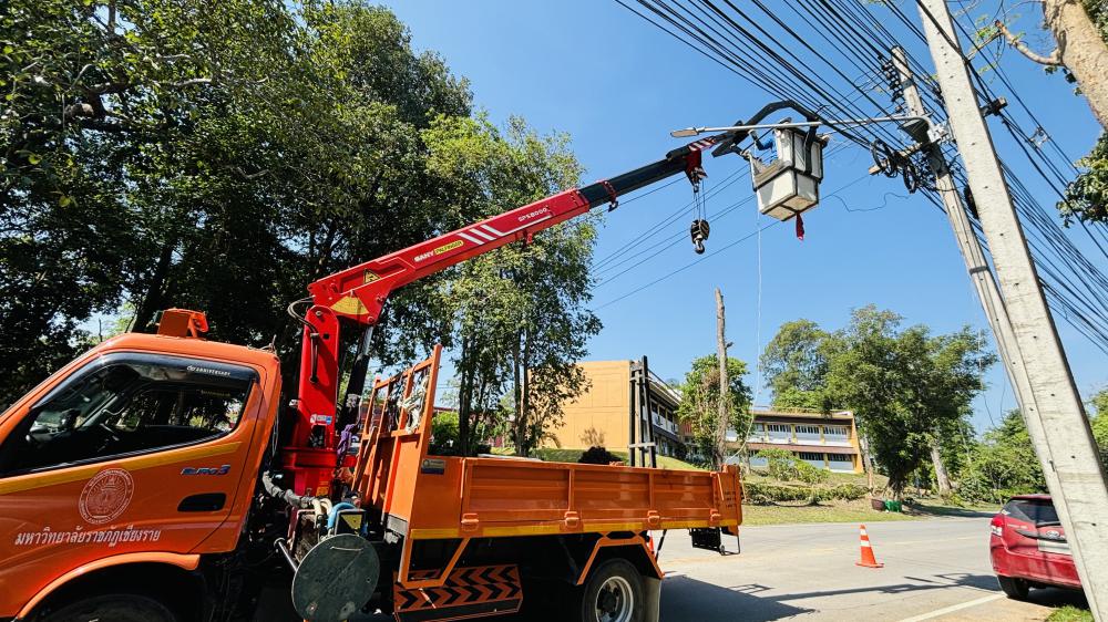 กองบริหารกายภาพฯ งานซ่อมไฟส่องสว่างถนน เส้นทางสี่แยกกาสะลองคำ ถึงโรงผลิตน้ำประปา 1