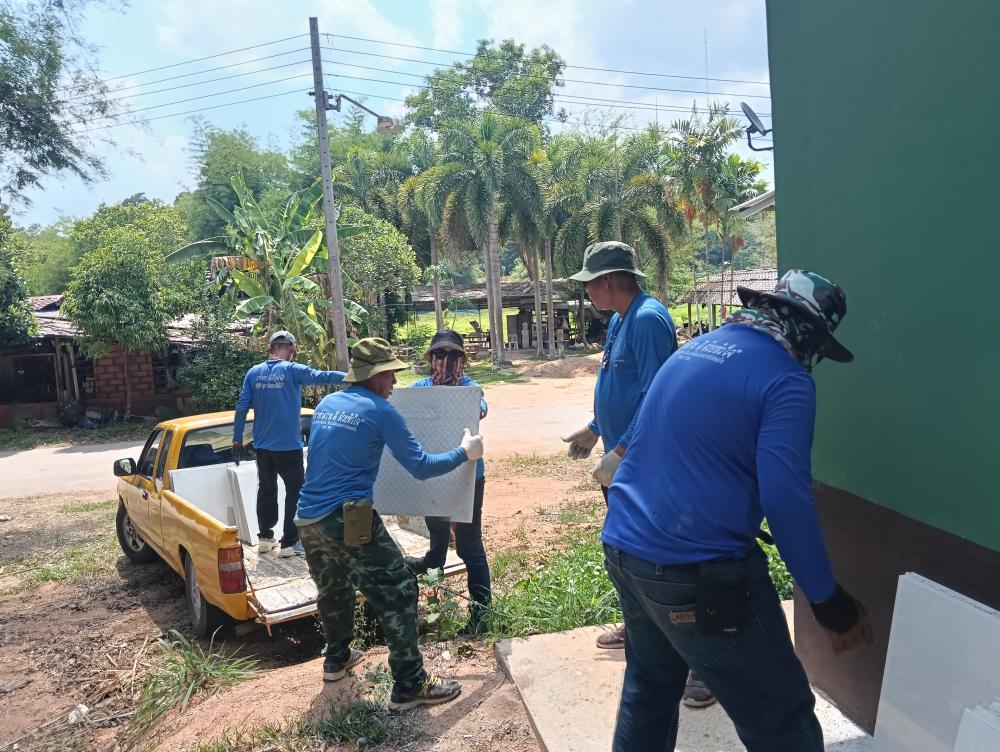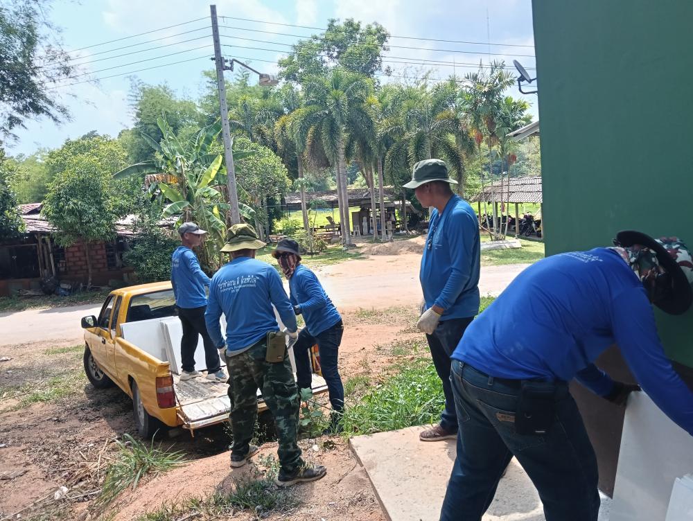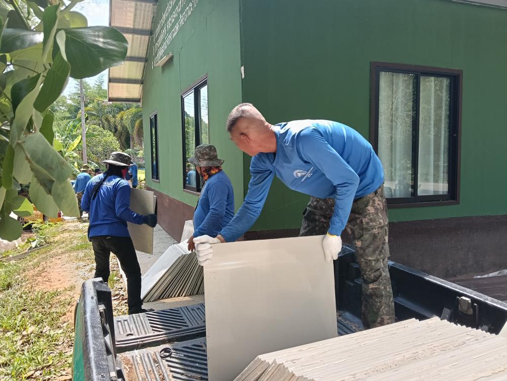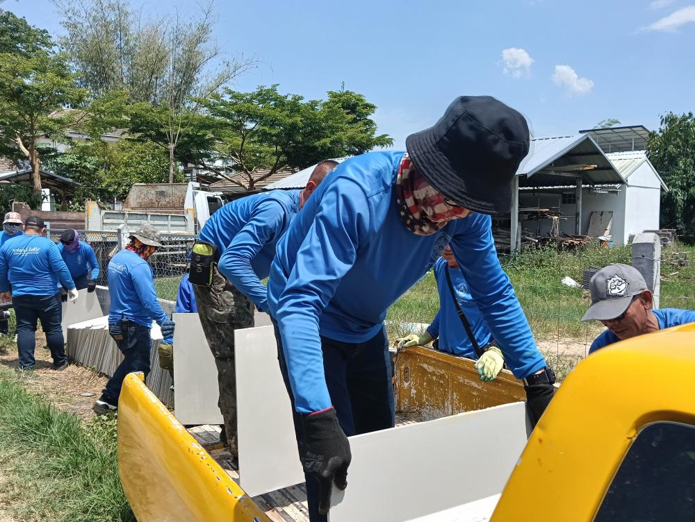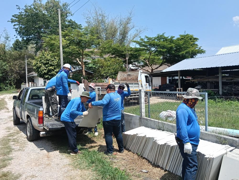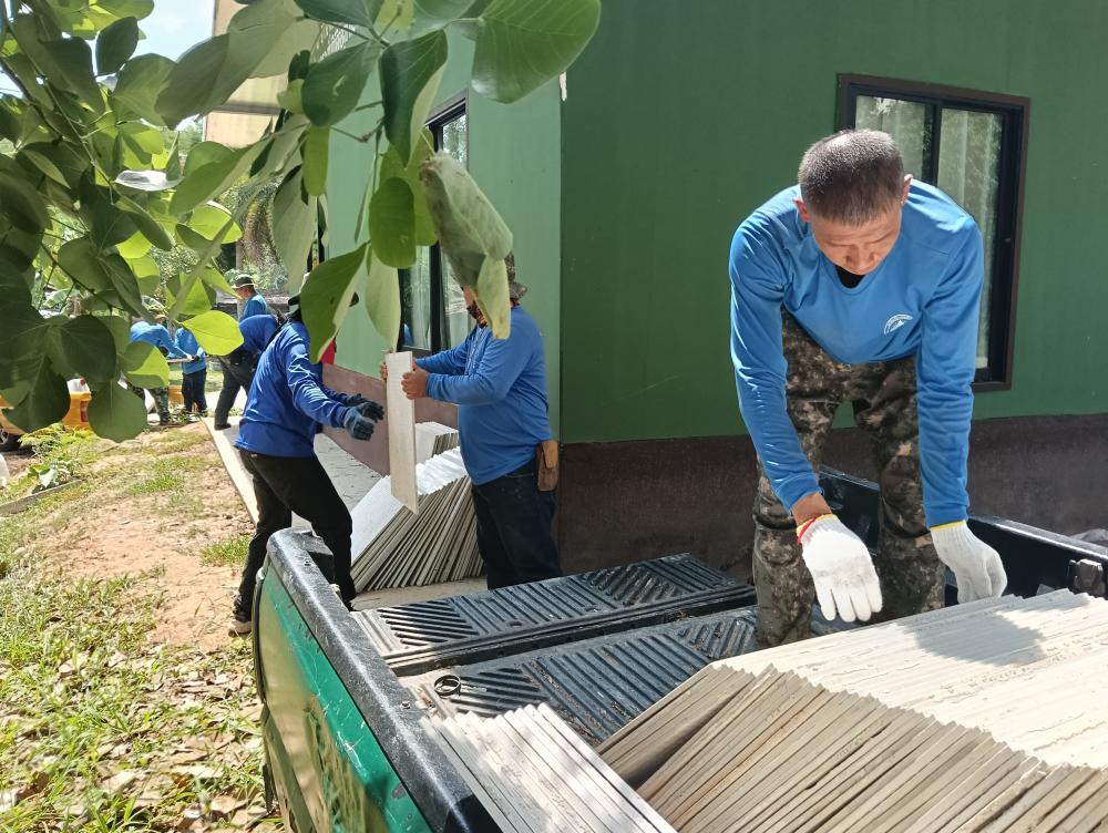 กองบริหารกายภาพฯ ขนกระเบื้องปูพื้นมาเก็บที่สำนักงานภูมิทัศน์