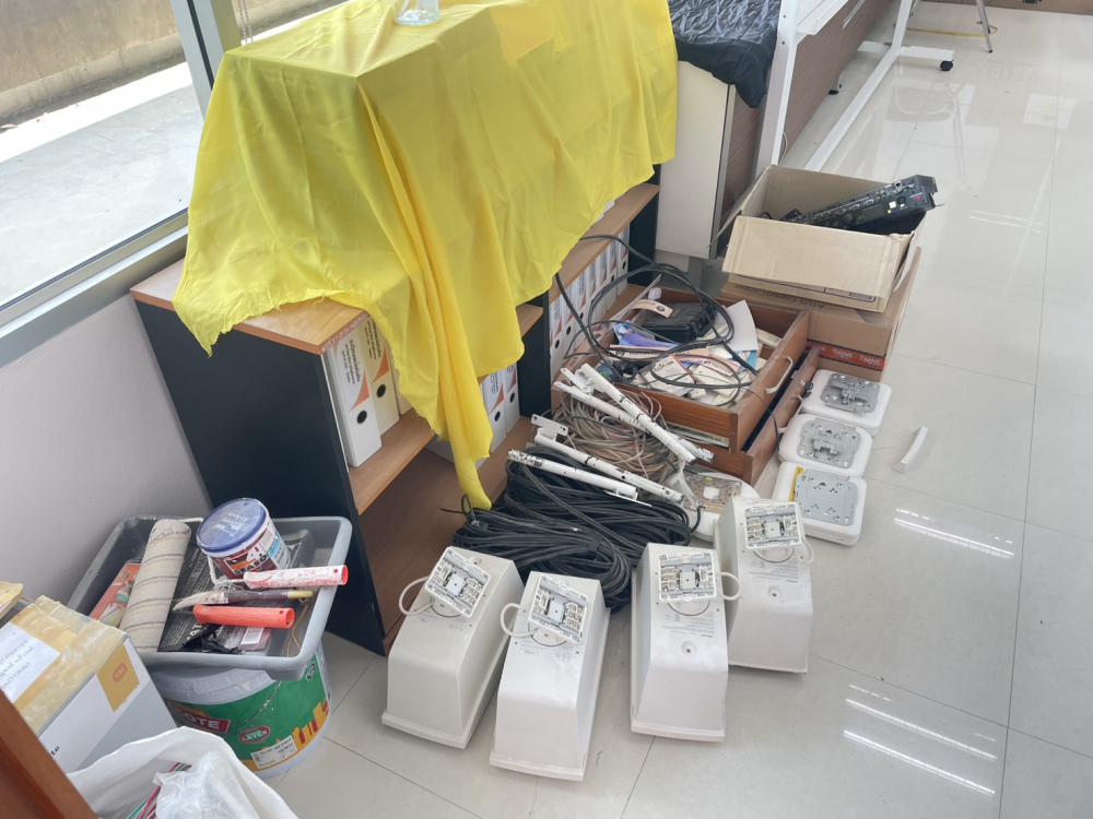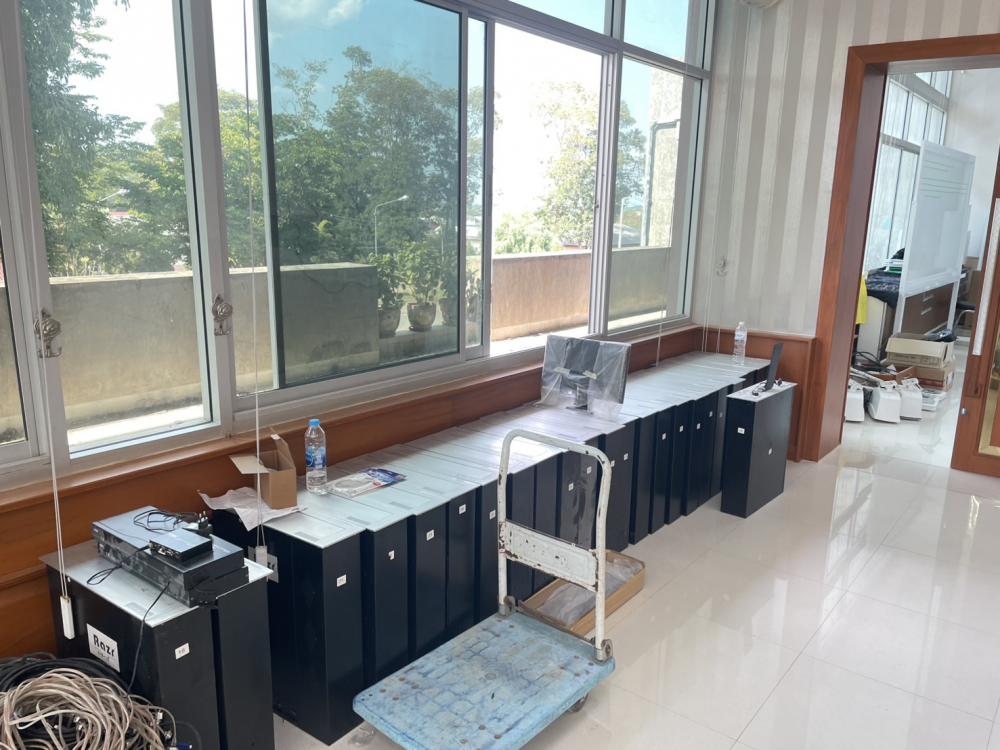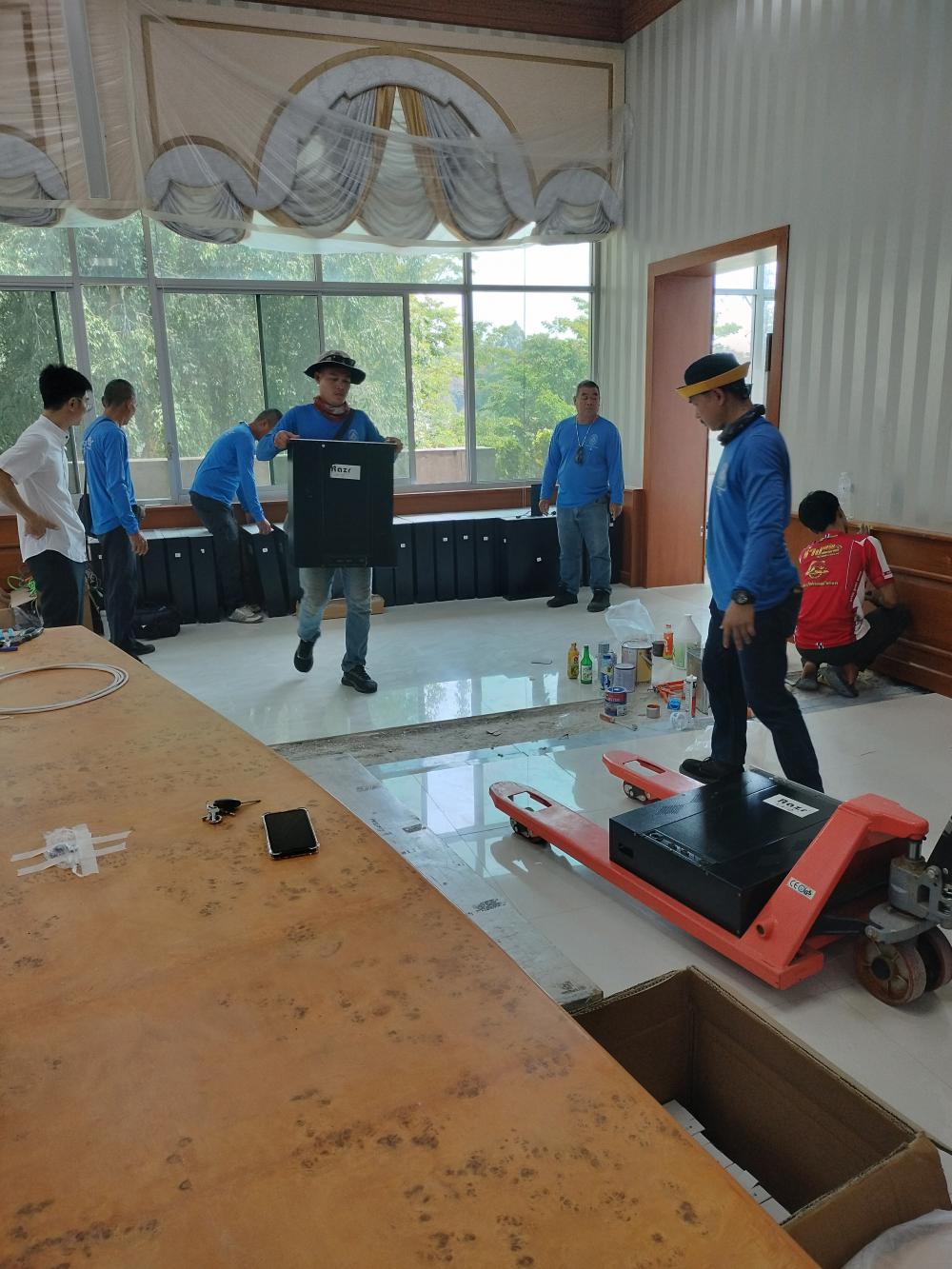 กองบริหารกายภาพฯ ขนย้ายวัสดุ-อุปกรณ์ ภายในห้องประชุมสภามหาวิทยาลัย ไปเก็บที่ห้องเก็บวัสดุ-อุปกรณ์ ชั้นใต้ดิน อาคารสำนักงานอธิการบดี