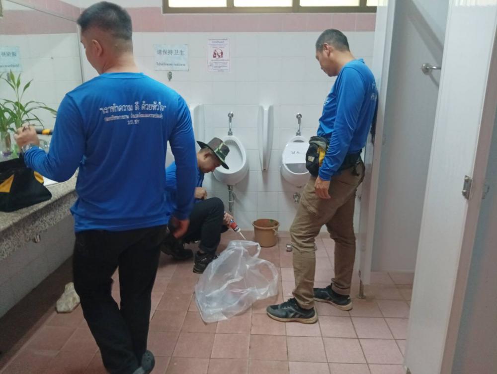 สถาบันภาษา โทรมาแจ้งว่าก๊อกน้ำรั่วในห้องน้ำ