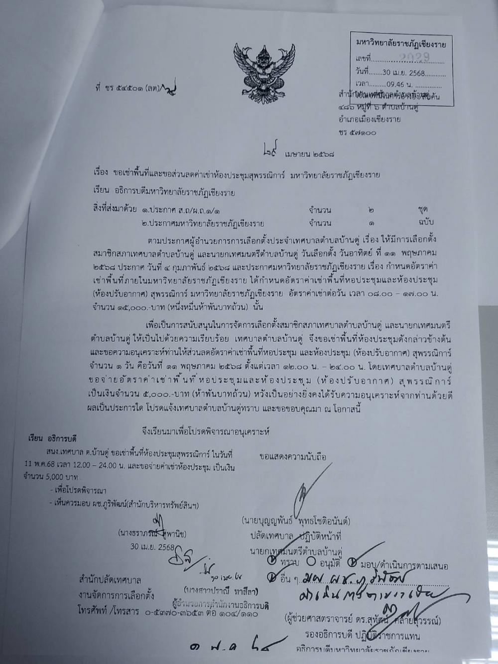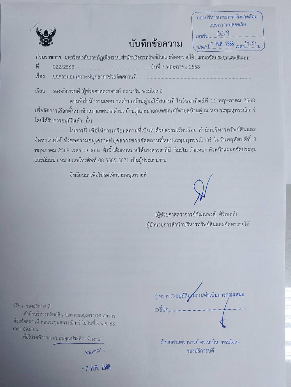 กองบริหารกายภาพฯ จัดสถานที่ให้เทศบาลตำบลบ้านดู่หอประชุมสุพรรณิการ์