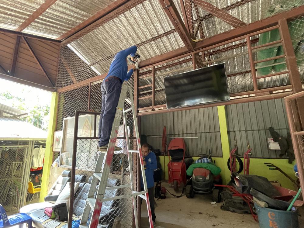 กองบริหารกายภาพฯ ติดตั้งทีวีและติดตั้งปลั๊กไฟฝ่ายงานสวนสมเด็จ