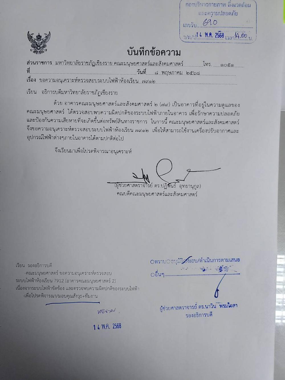 เช็คระบบไฟเครื่องปรับอากาศ อาคารเรียน 79 วันที่ 8 พ.ค. 68