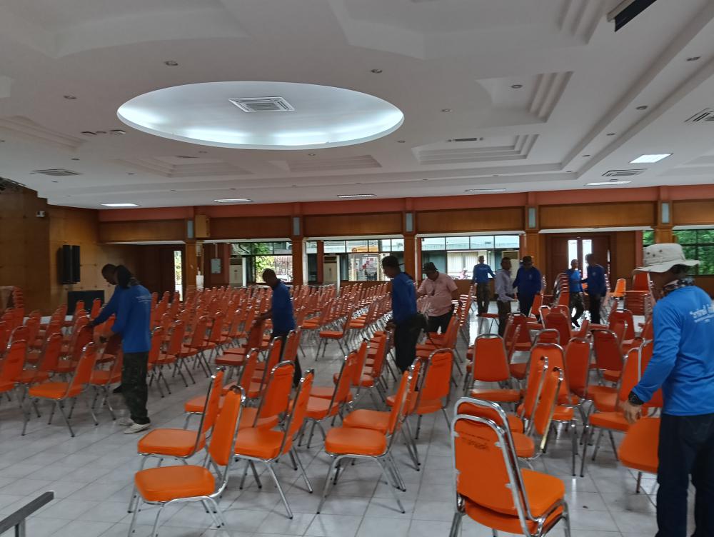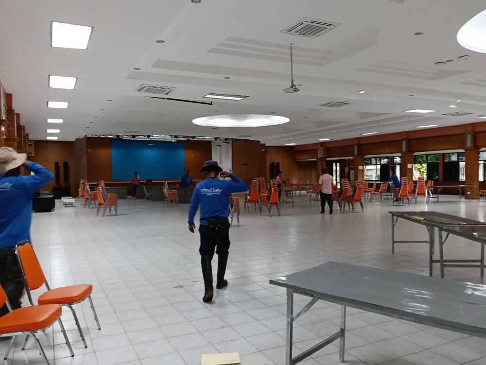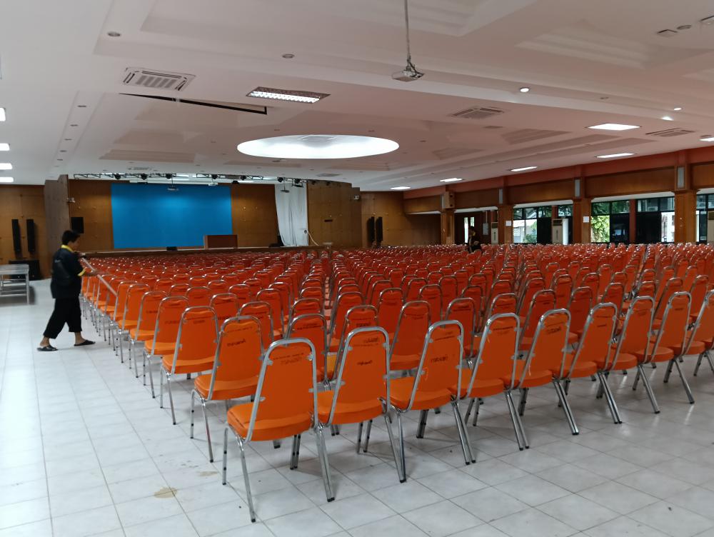 กองกลาง จัดเก้าอี้กาสะลองคำงานแสดงวิสัยทัศน์ผู้สมัครอธิการบดี