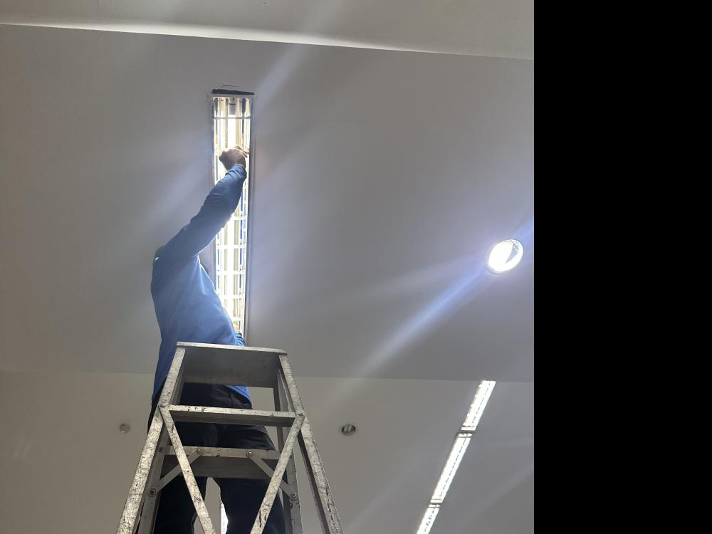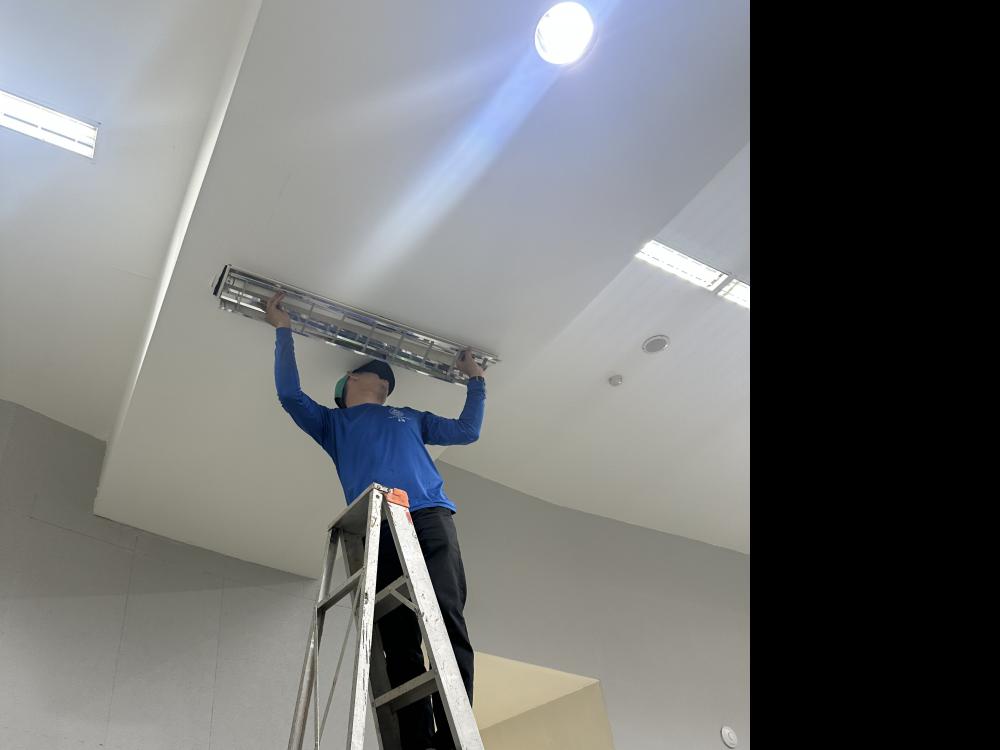 งานตรวจสอบและเปลี่ยนหลอดไฟห้องประชุมนนทรี