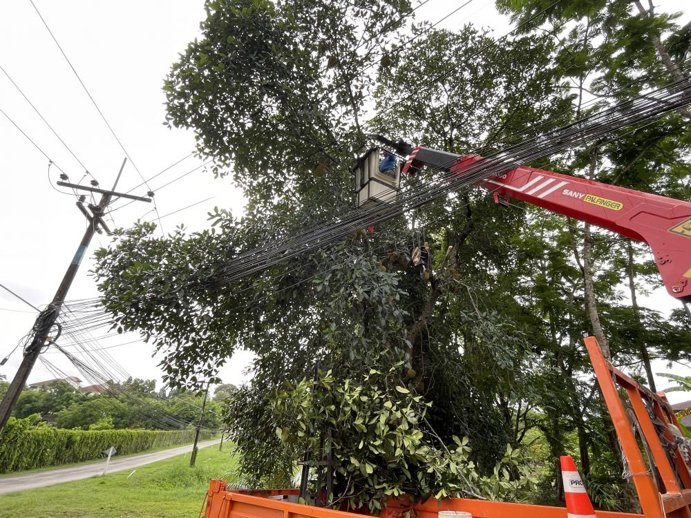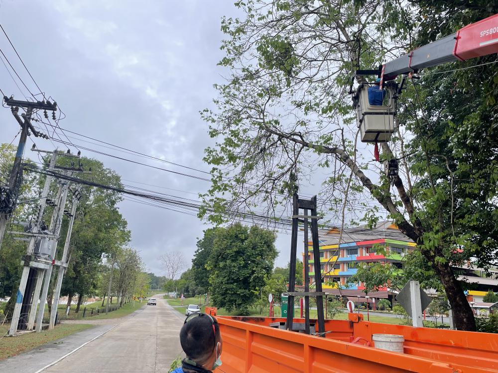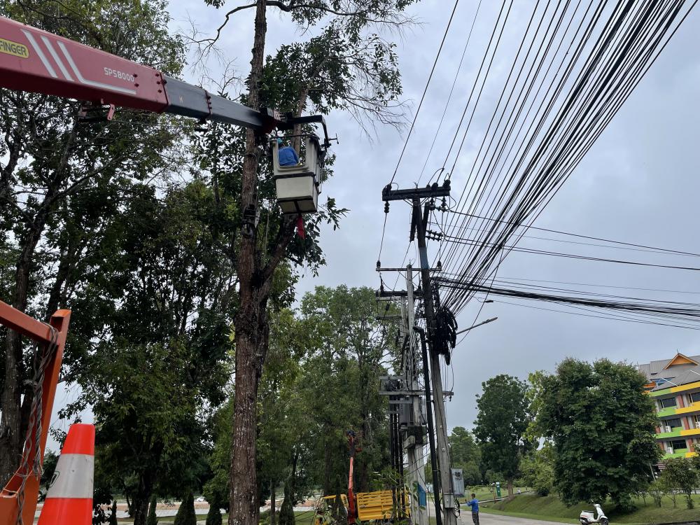 สำนักวิทยบริการฯ ไฟฟ้าดับบริเวณอาคารยุพราชวิทยมงคล พบมีต้นไผ่และลิ้นจี่ฟาดกับสายแรงสูงทำให้เกิดช็อต และิวส์แรงสูงขาด