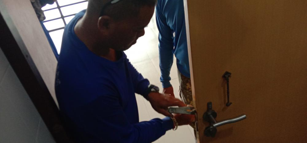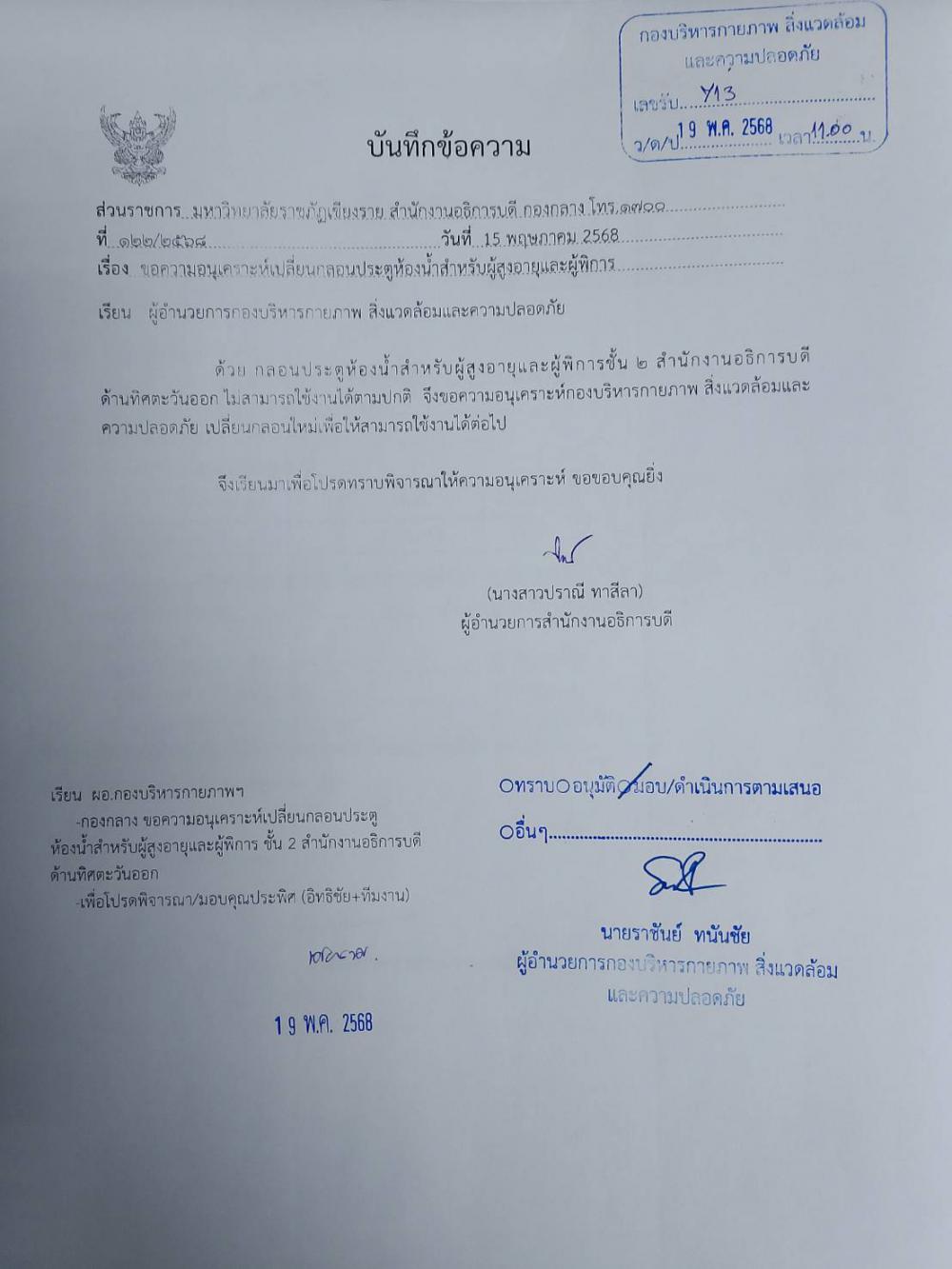 เปลี่ยนกลอนประตูห้องน้ำสำหรับผู้สูงอายุและผู้พิการ อาคารสำนักงานอธิการบดี