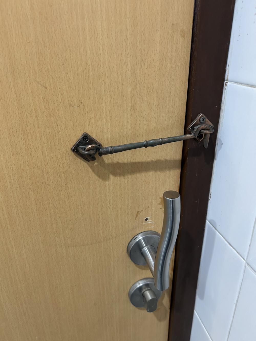 กองกลาง เปลี่ยนกลอนประตูห้องน้ำสำหรับผู้สูงอายุและผู้พิการ อาคารสำนักงานอธิการบดี (ผู้อำนวยการสำนักงานขอกลอนประตูแบบในรูปดังแนบ)