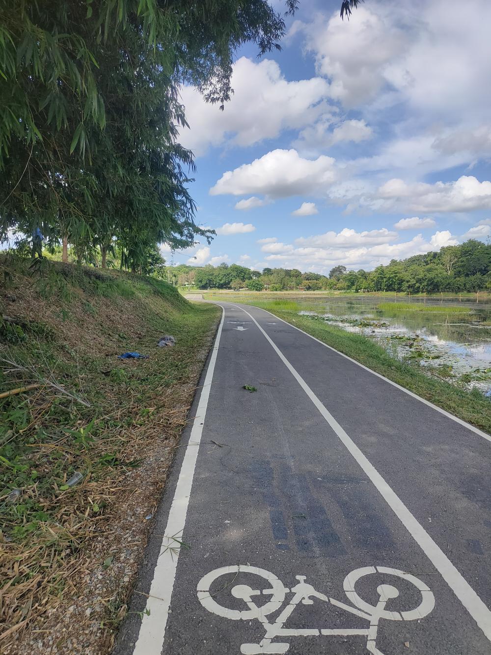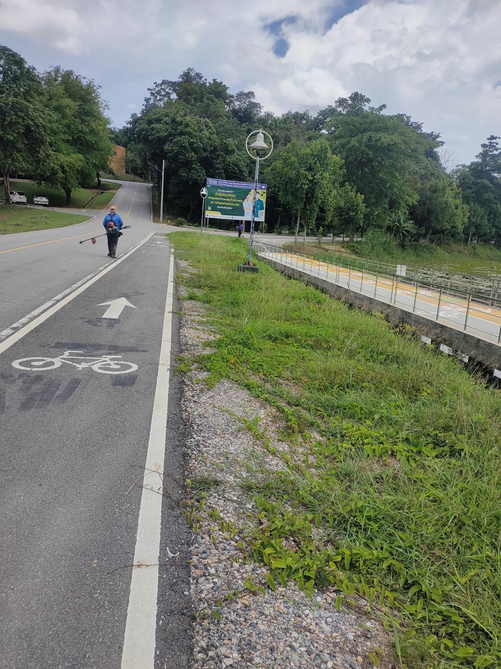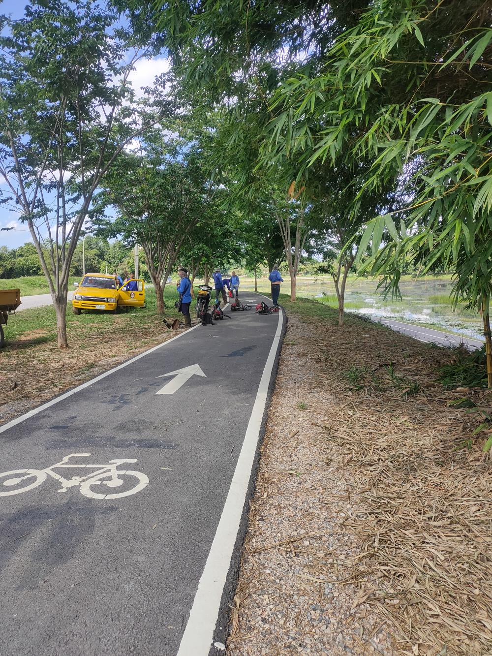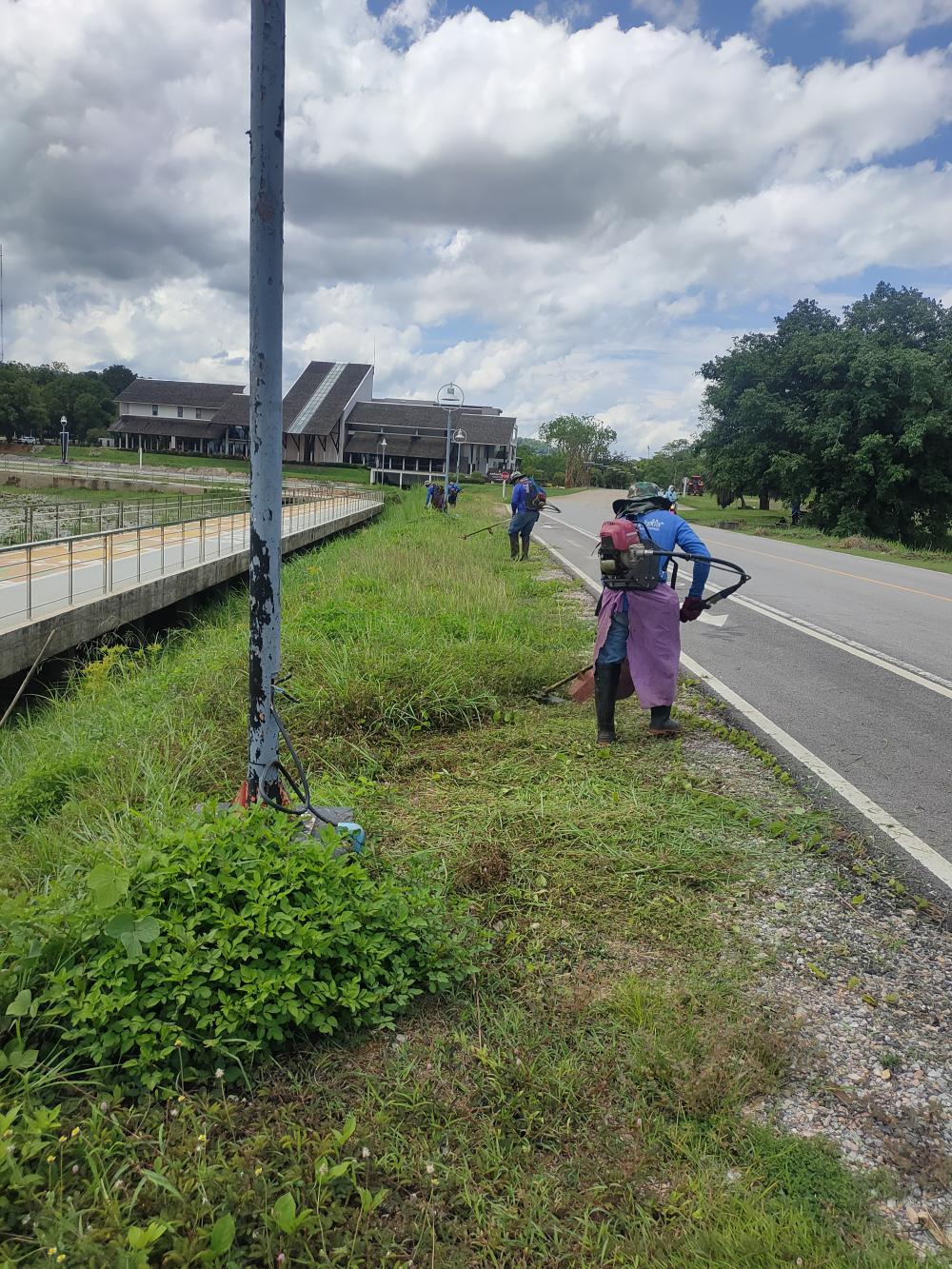 กองบริหารกายภาพฯ ตัดหญ้าทางเดินทางจักรยานที่ออกกำลังกายริมสระหนองบัว