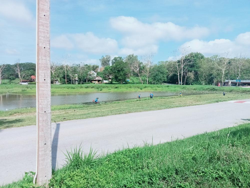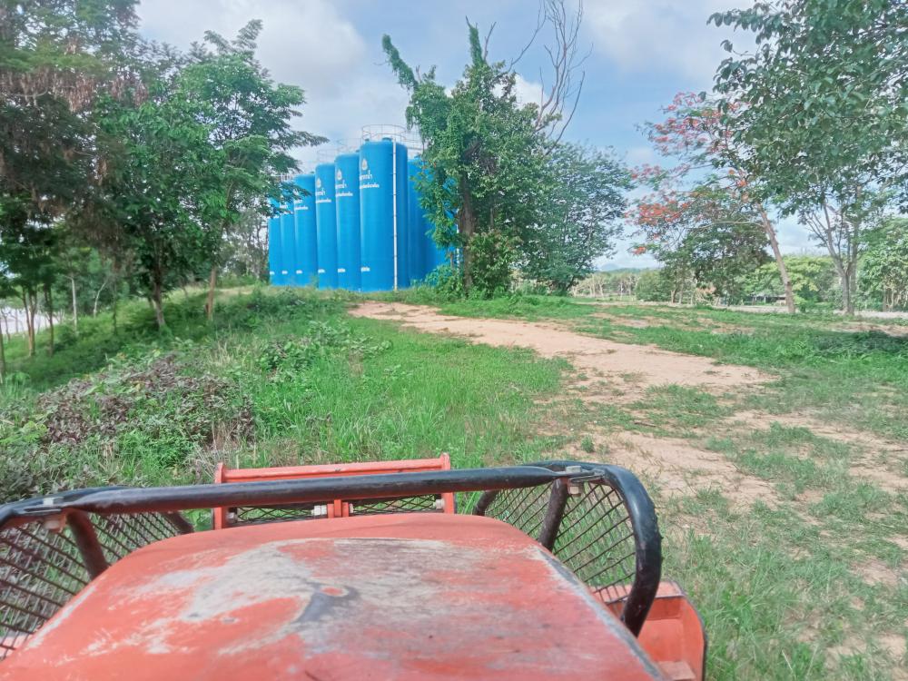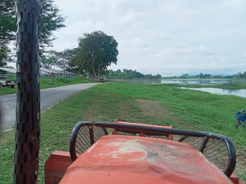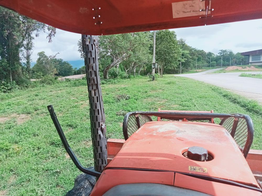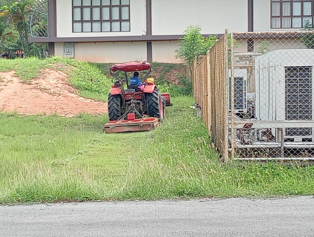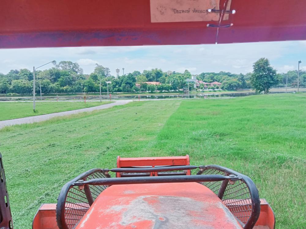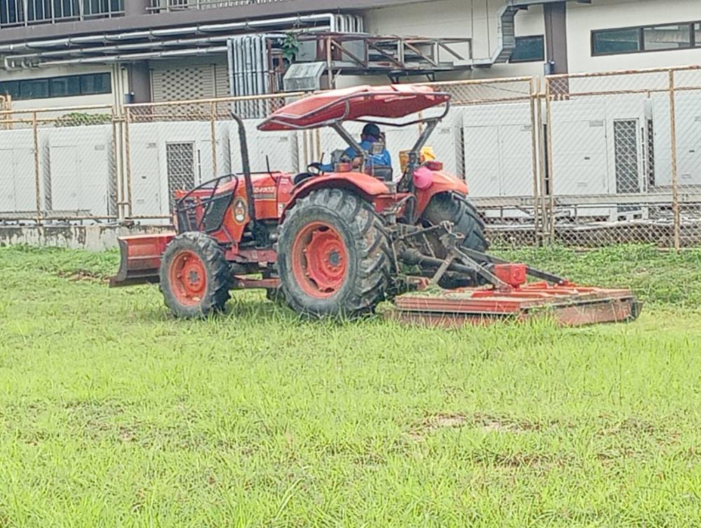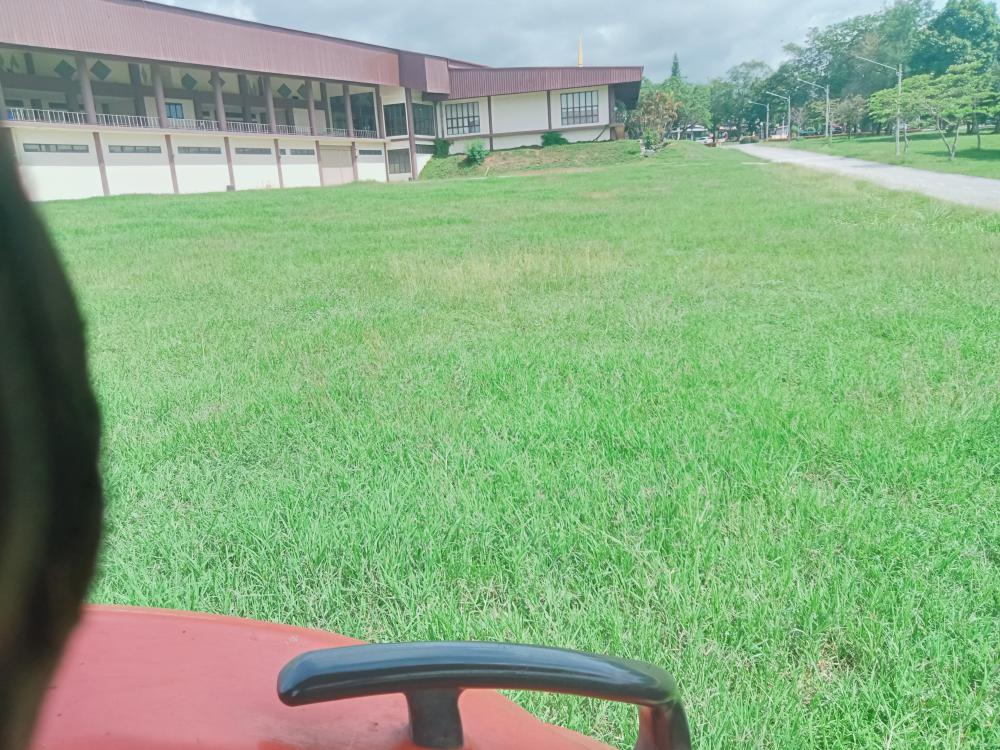 ขับรถแทรกเตอร์ ตัดหญ้าทางเข้าประตู3 และหอประชุมใหญ่