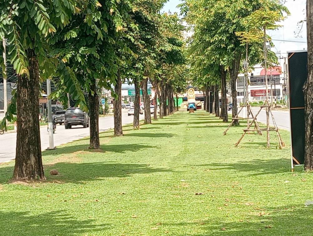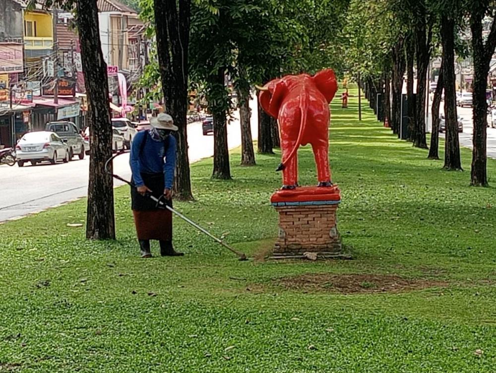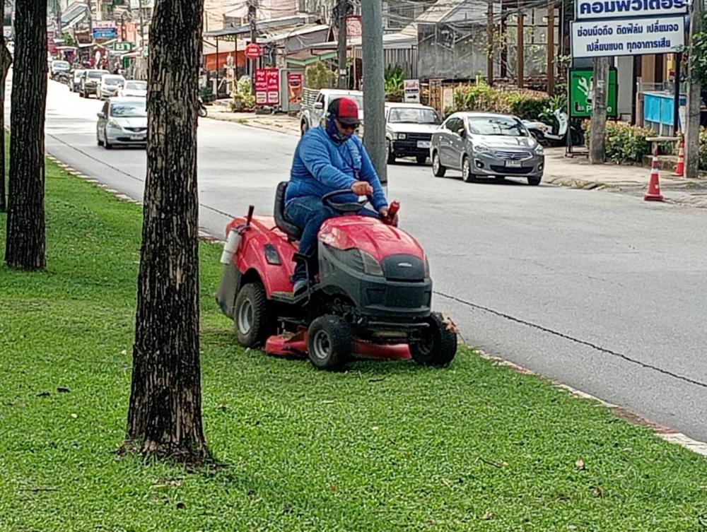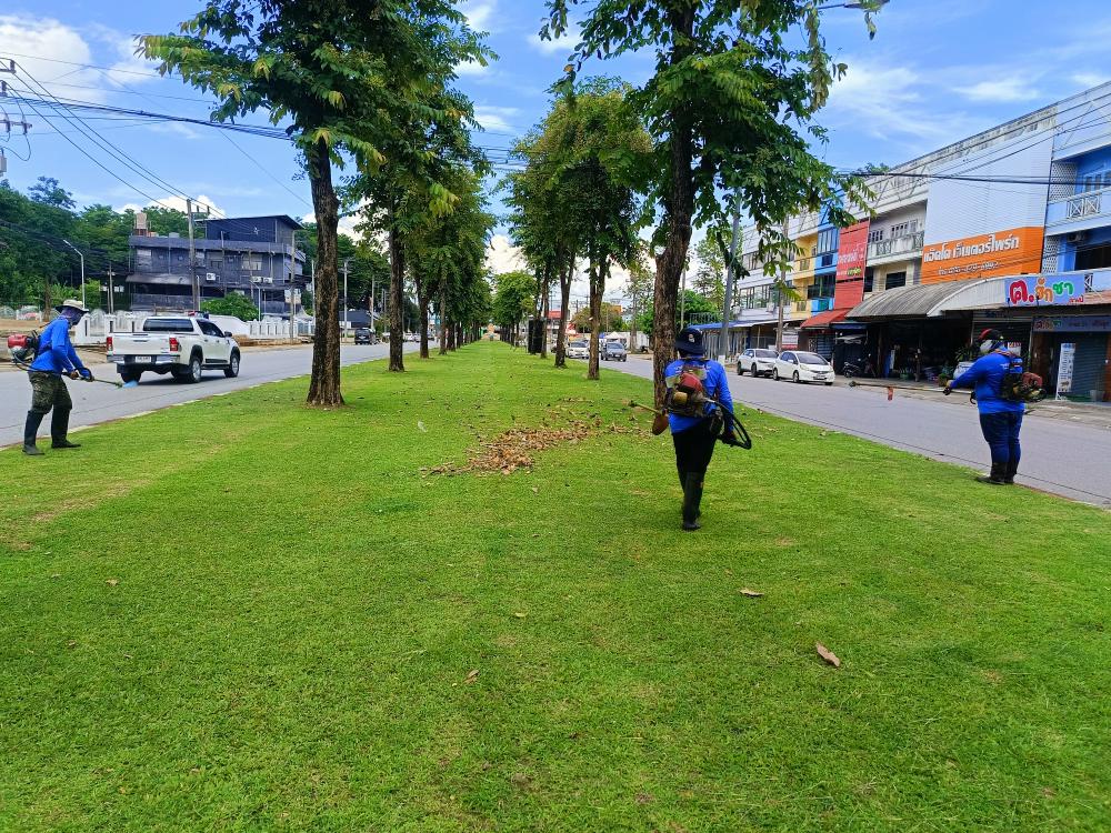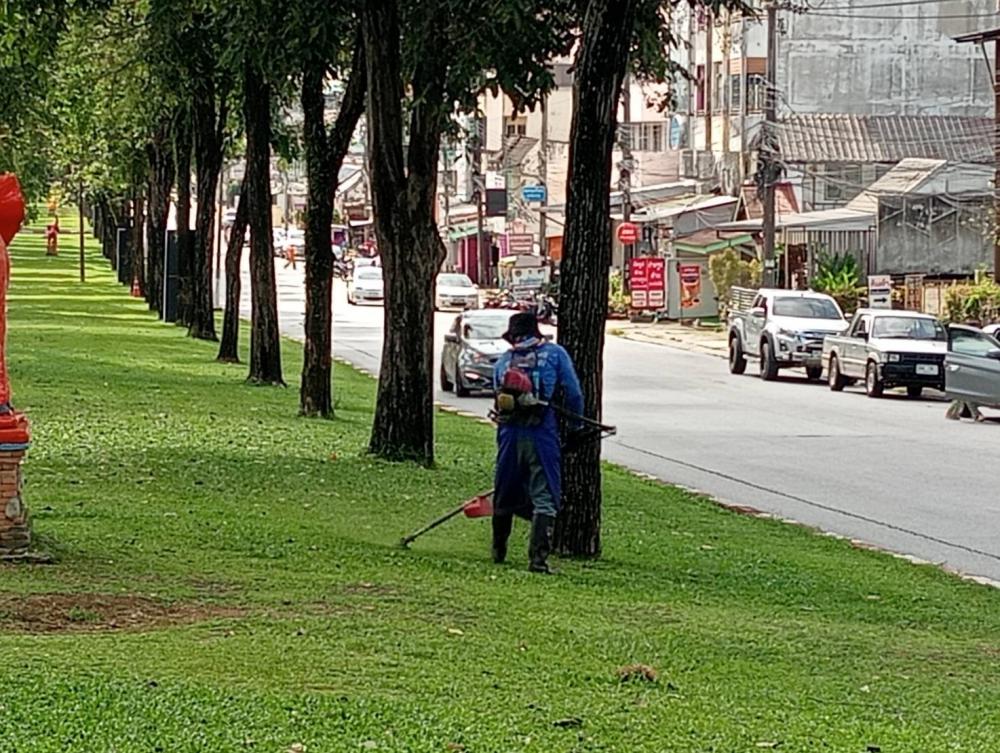 ตัดหญ้าเกาะกลางถนนหน้าประตู 1