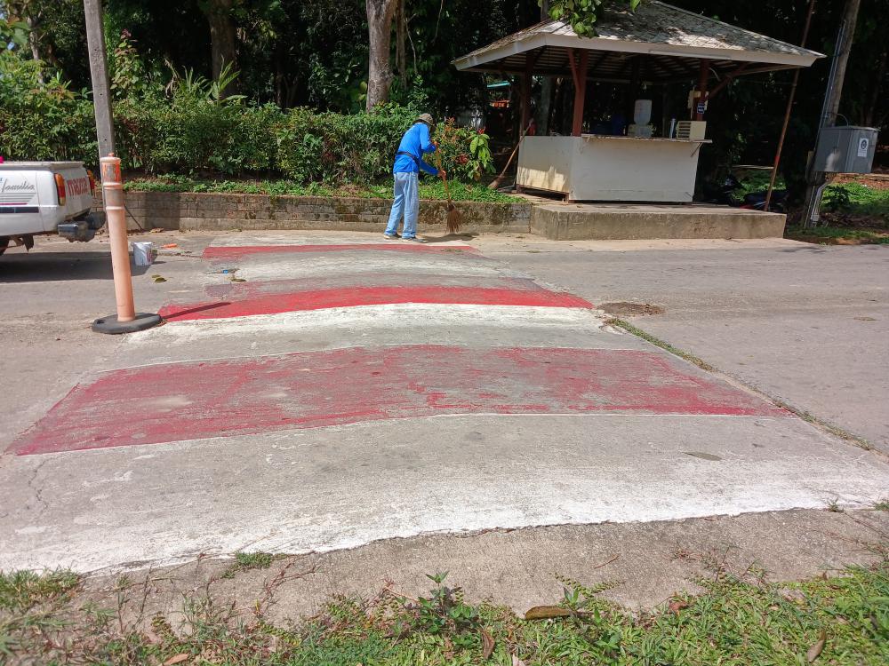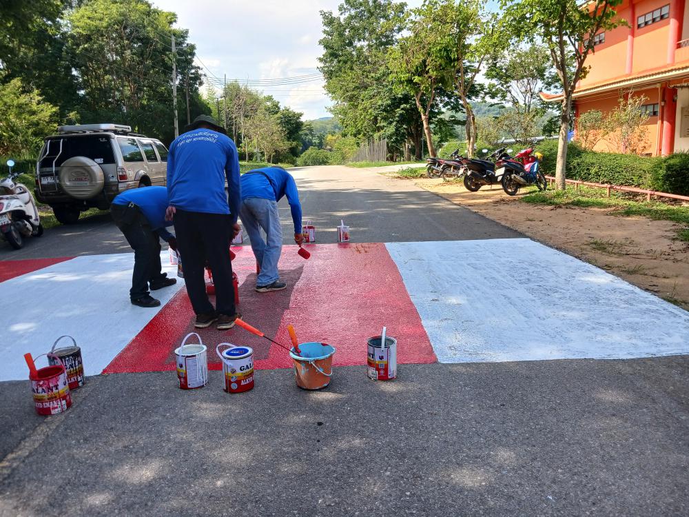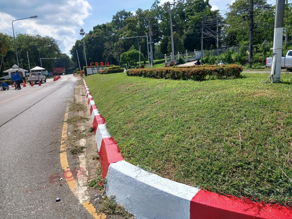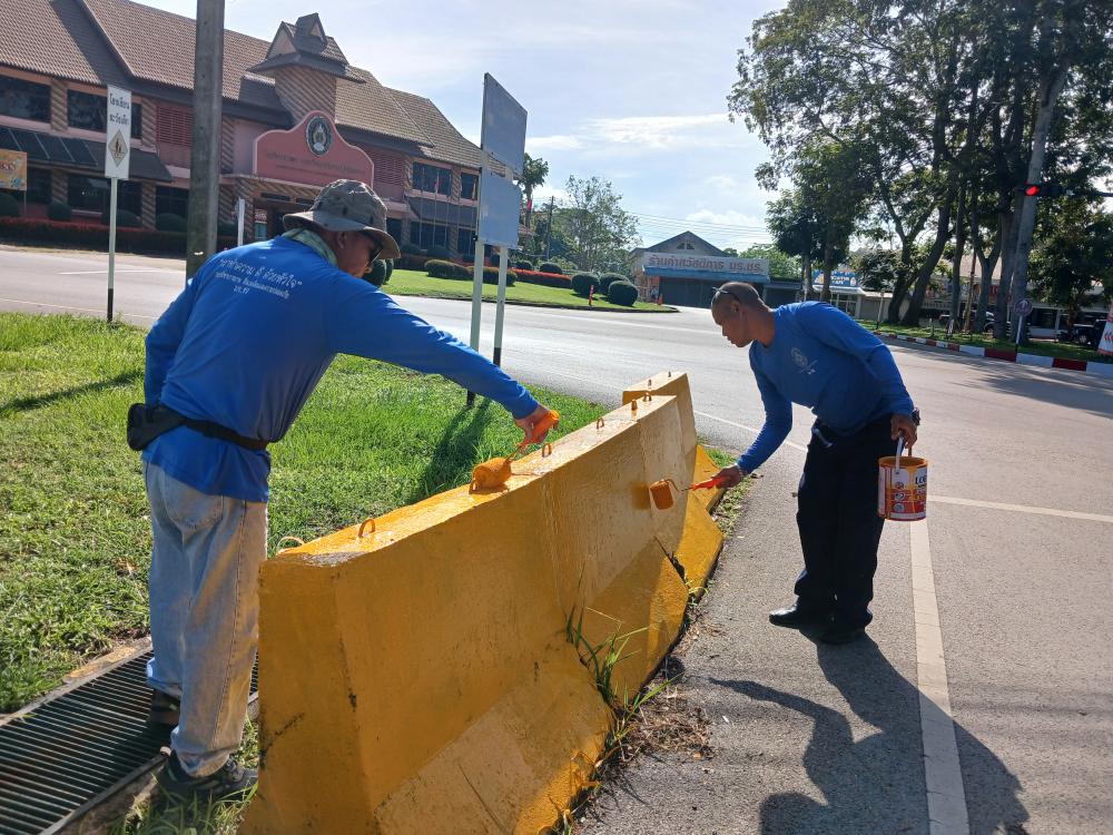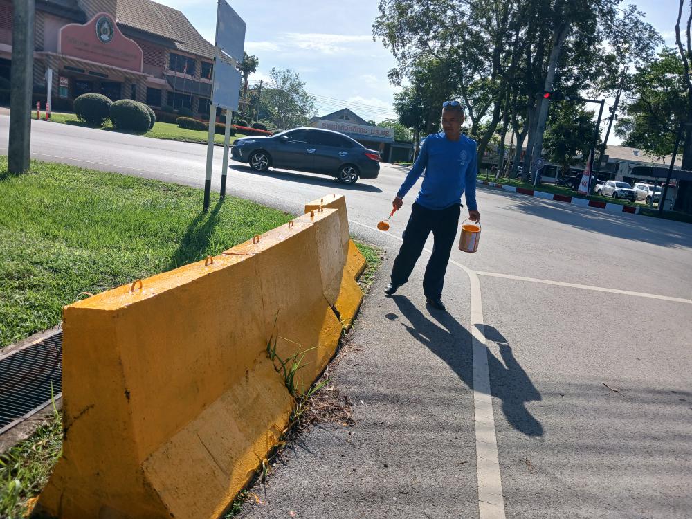 ทาสีจราจรหน้าหอพักนักศึกษาและรั้วหน้าหอพัก