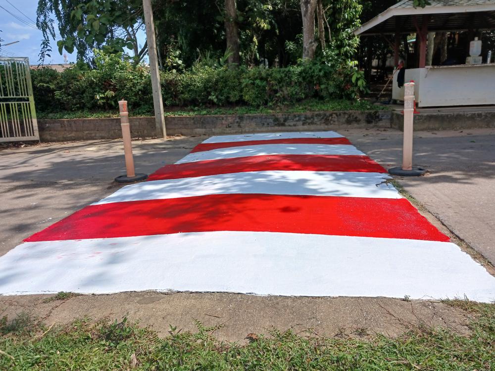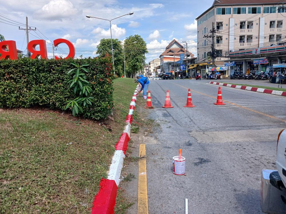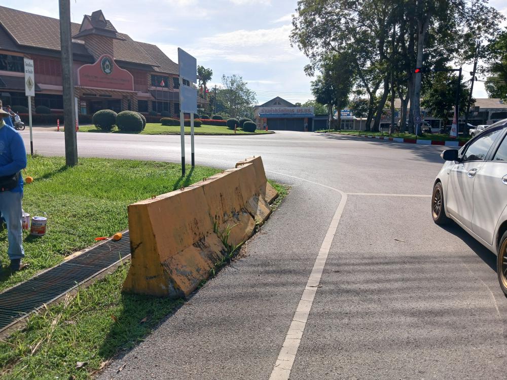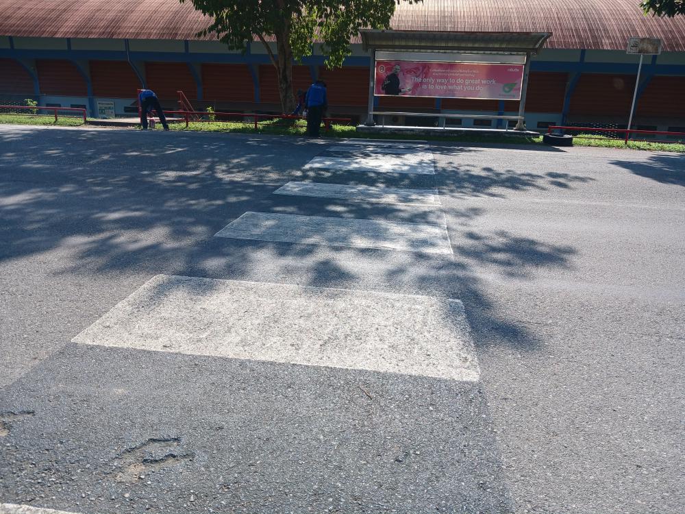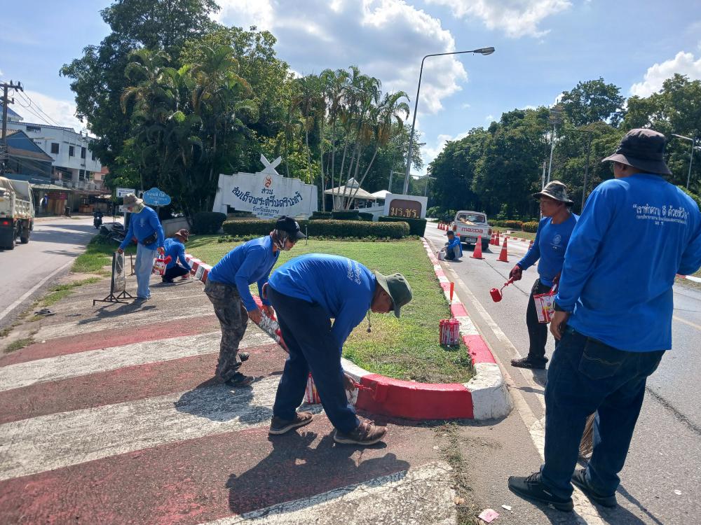 ทาสีจราจรหน้าหอพักนักศึกษาและรั้วหน้าหอพัก