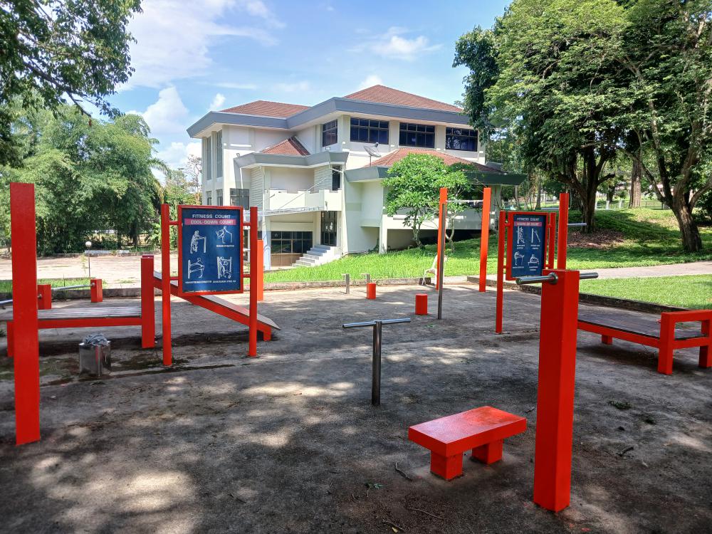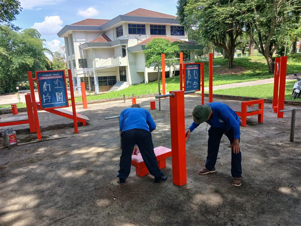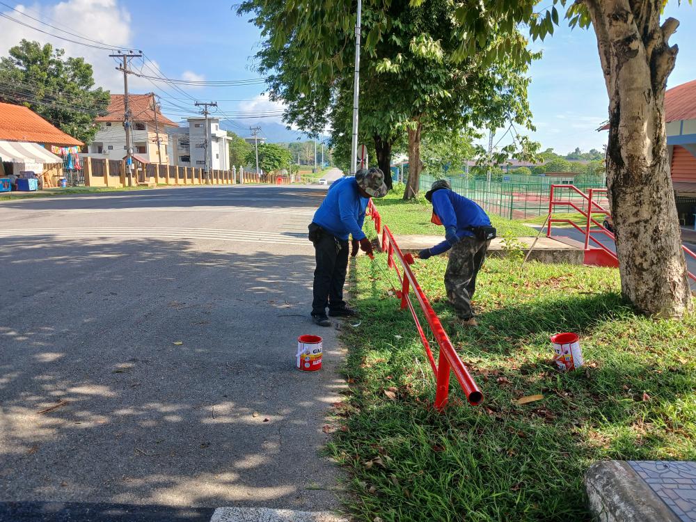 กองบริหารกายภาพฯ ทาสีจราจรด้านหน้าหอพักนักศึกษาและรั้วด้านหน้าหอพัก