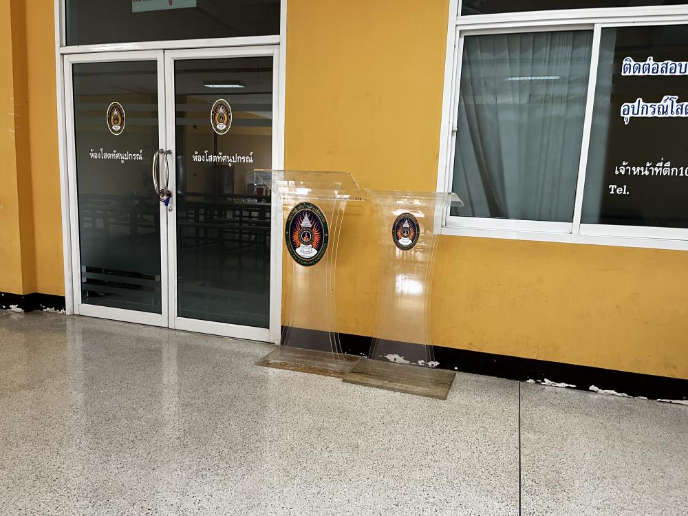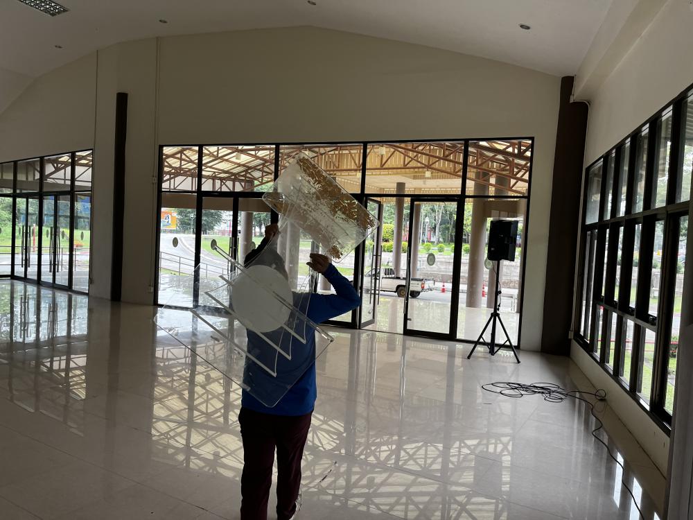 ขนโพเดียมใส จำนวน 2 ตัว ไปที่อาคารเรียนรวม 101