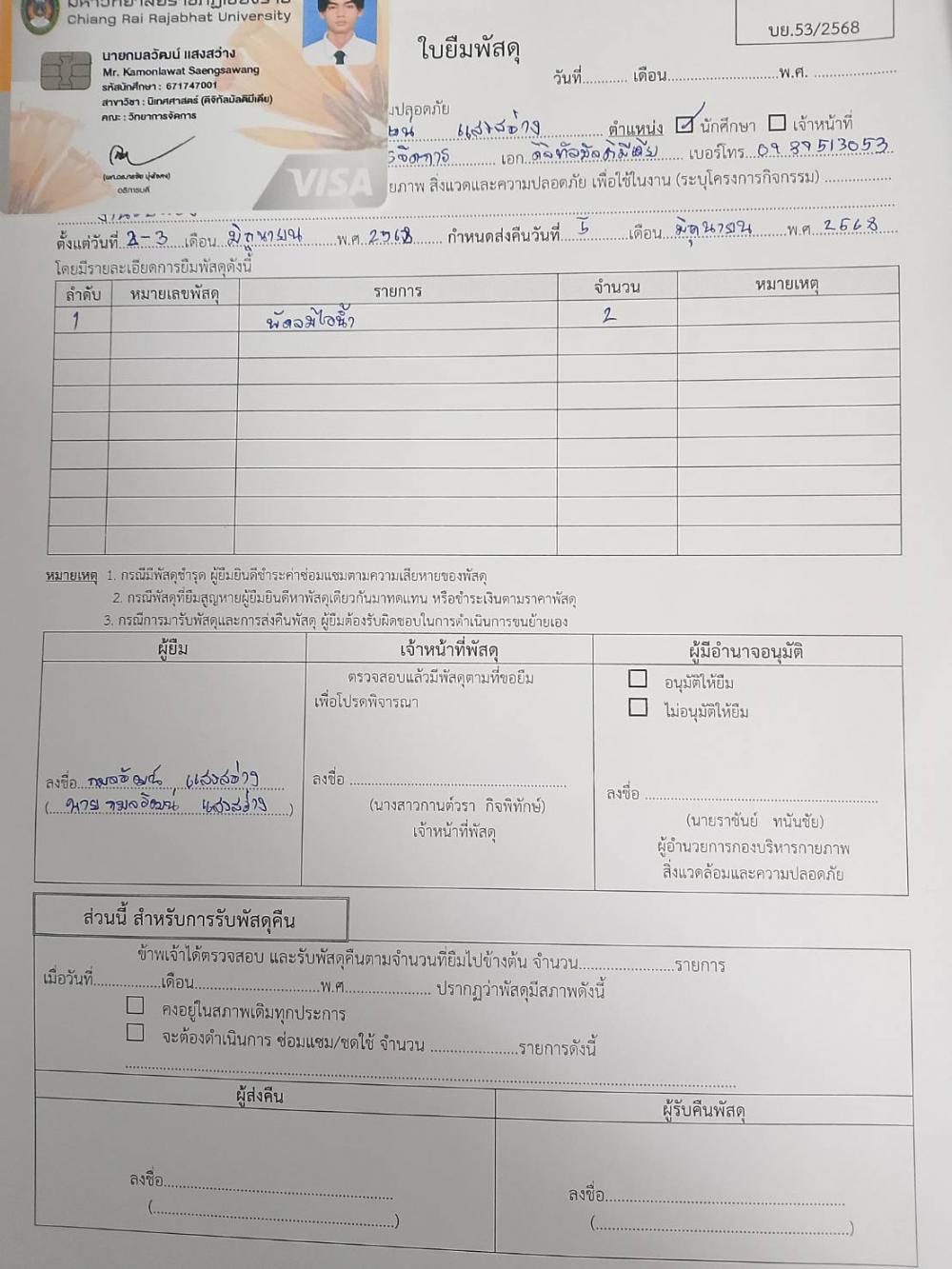 ให้บริการยืมพัสดุและขนย้ายพัดลมไอน้ำ จำนวน 2 ตัว ไปอาคารนิเทศศาสตร์ ระหว่างวันที่ 2-3 มิ.ย. 2568