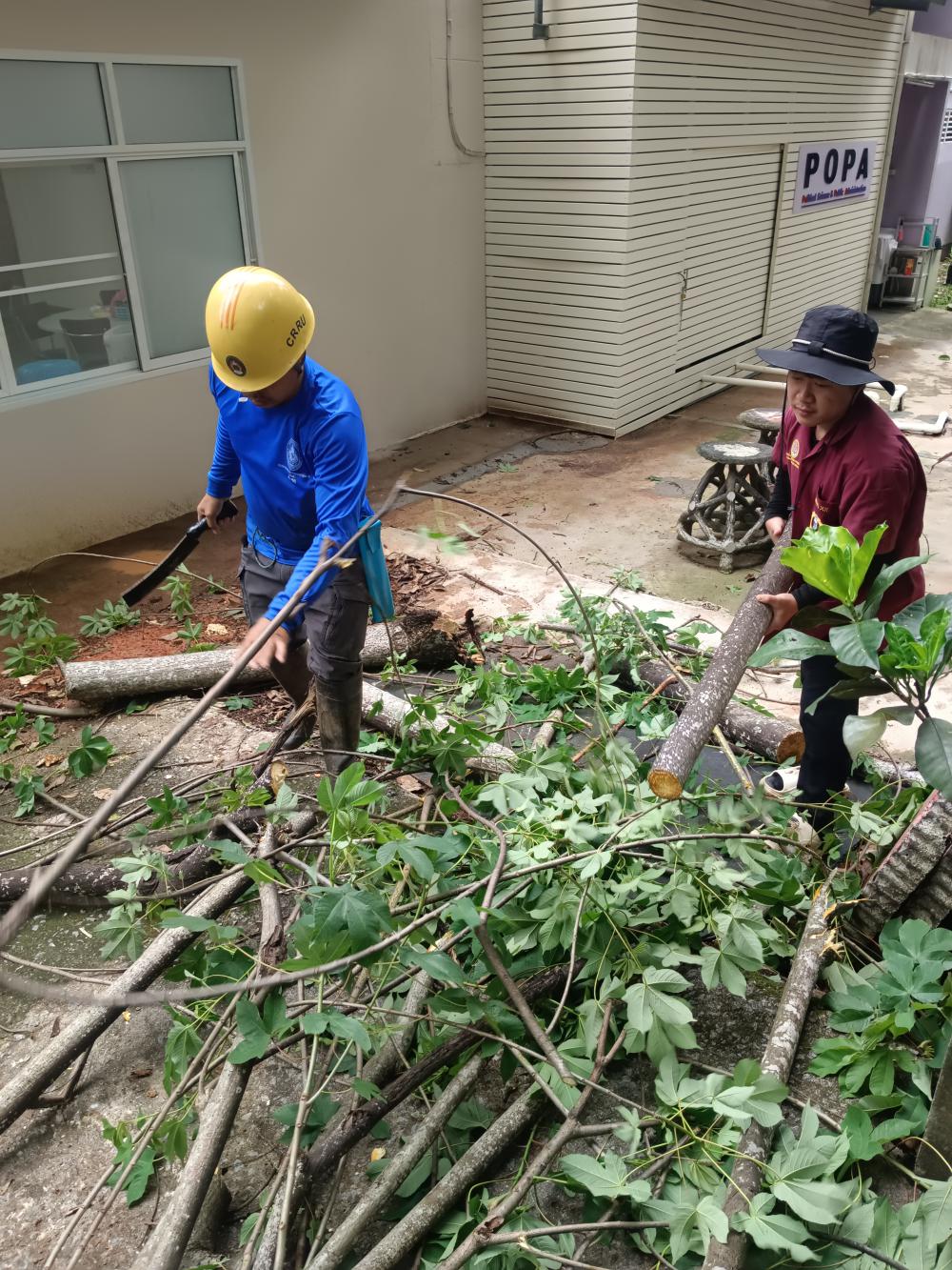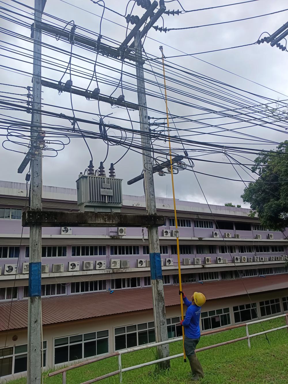 กองบริหารกายภาพฯ เปลี่ยนฟิวส์แรงสูงหม้อแปลง 250 kVAและตัดกิ่งไม้ หลังอาคาร รปศ.