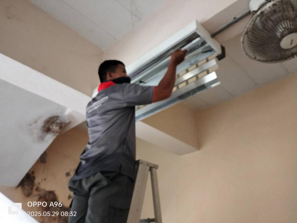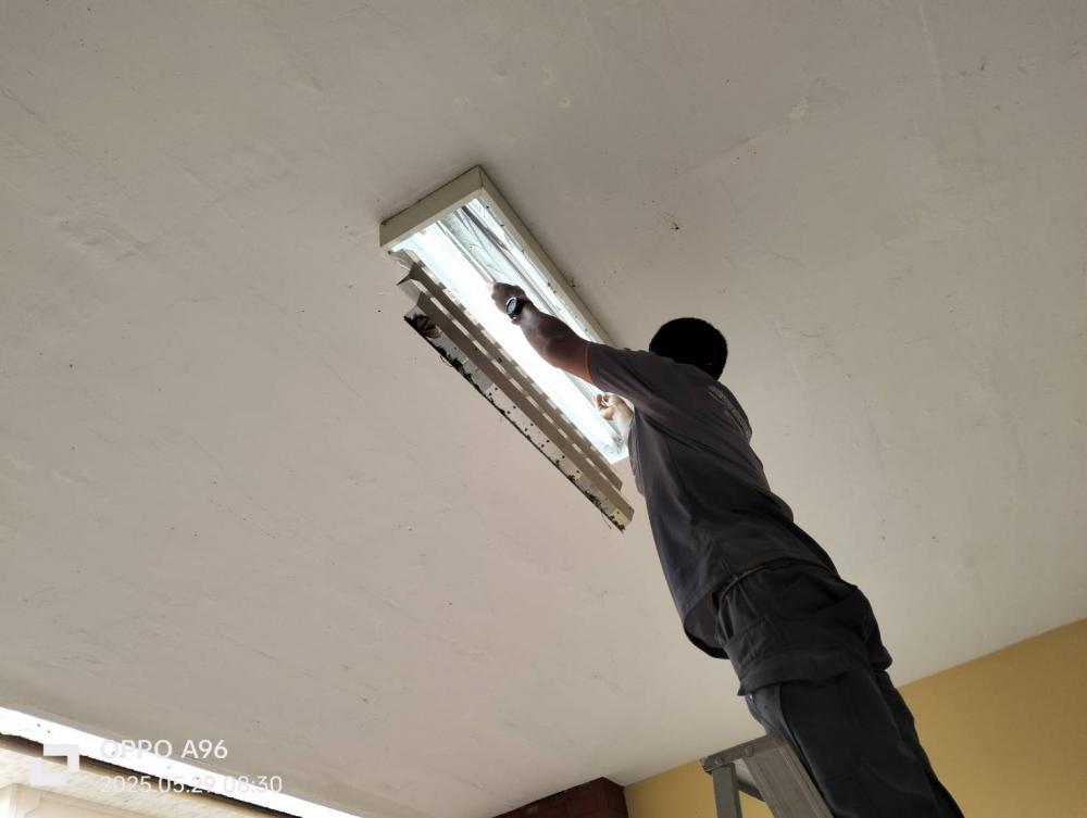 กองบริหารกายภาพฯ เปลี่ยนหลอดไฟทางเดินและห้องแม่บ้านอาคารเรียนรวม102