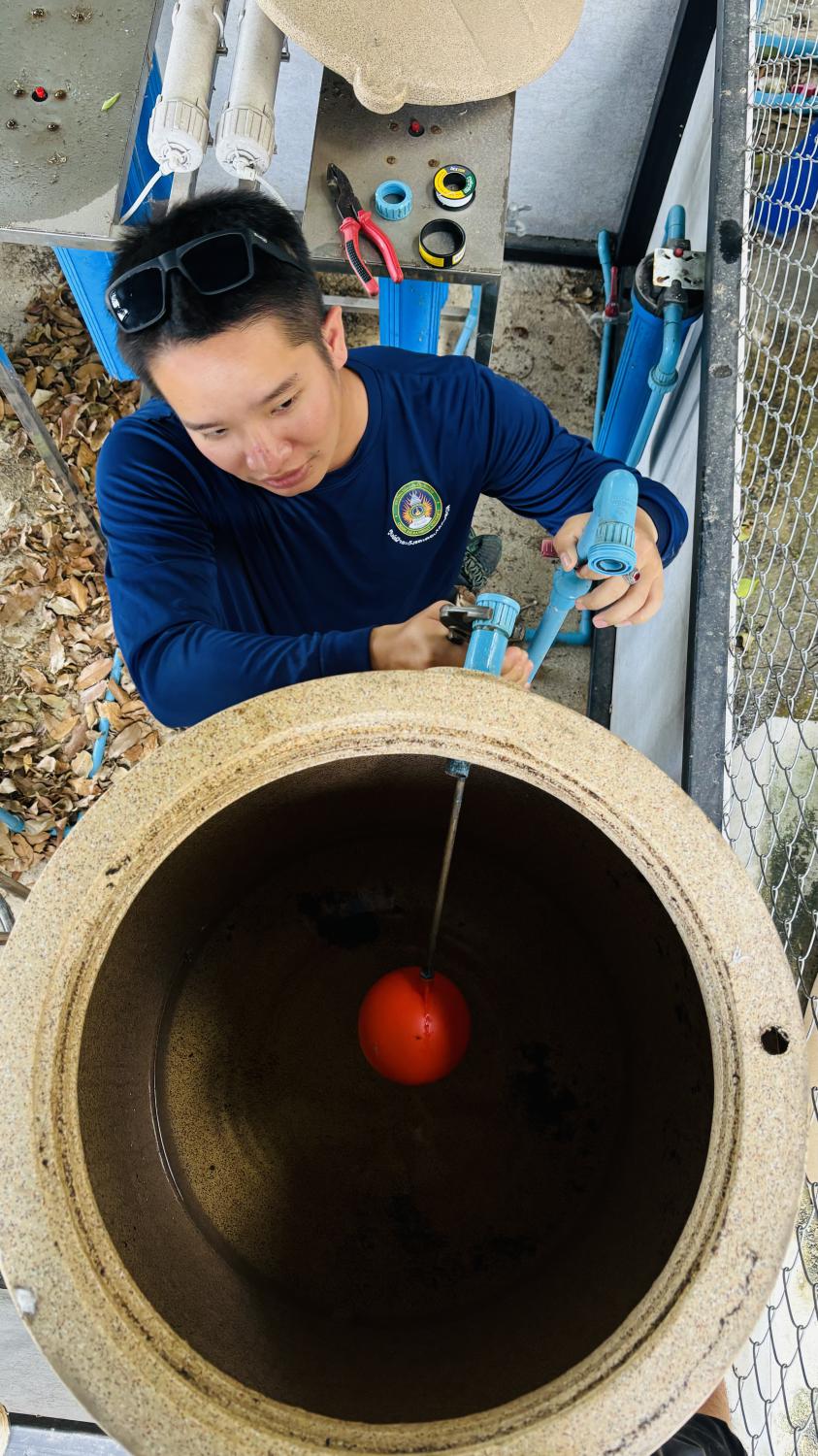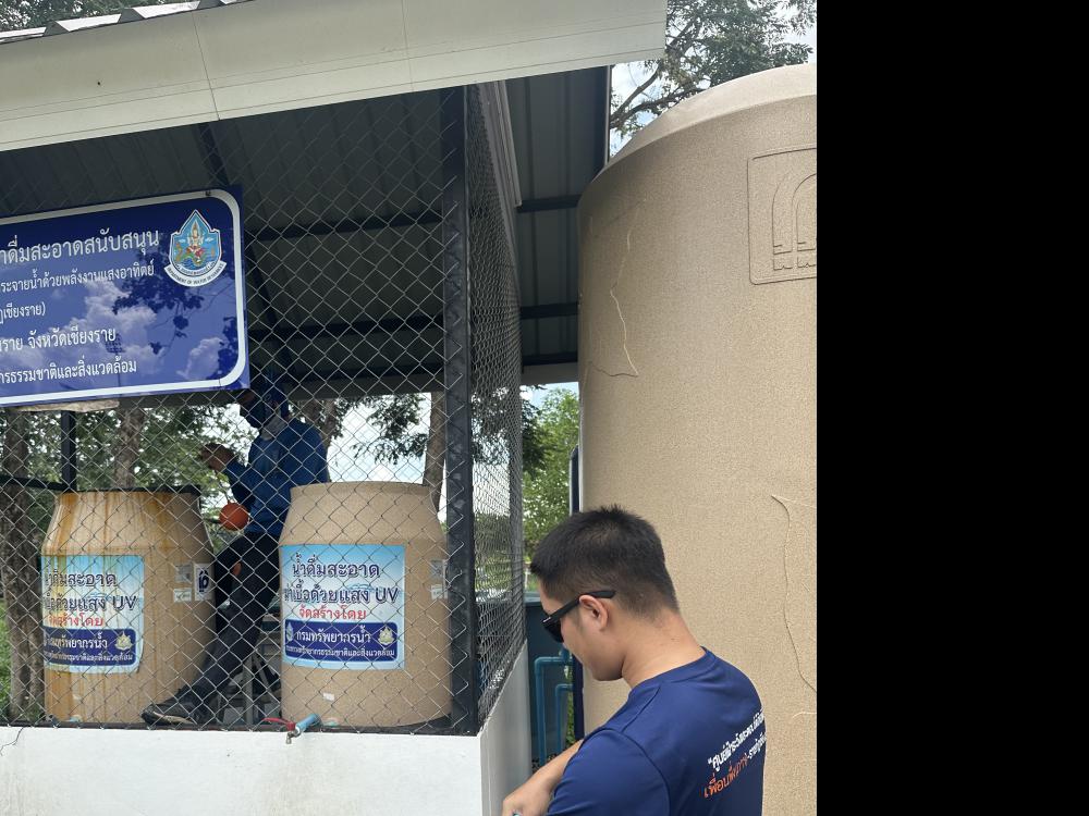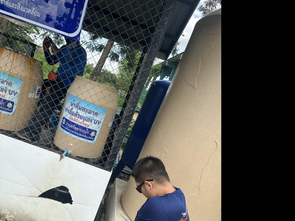 กองบริหารกายภาพฯ ล้างทำความสะอาดกรองโรงผลิตน้ำดื่มบริเวณด้านในหอพักนักศึกษา