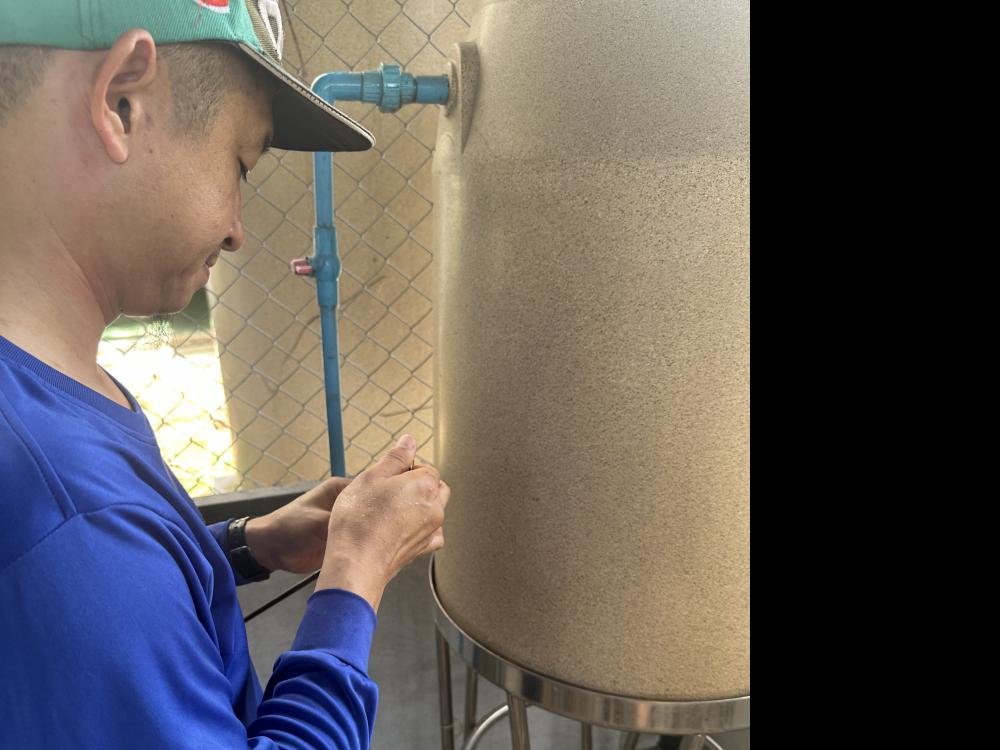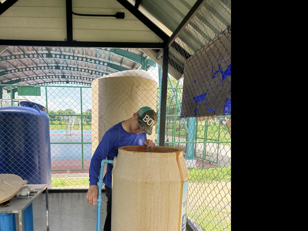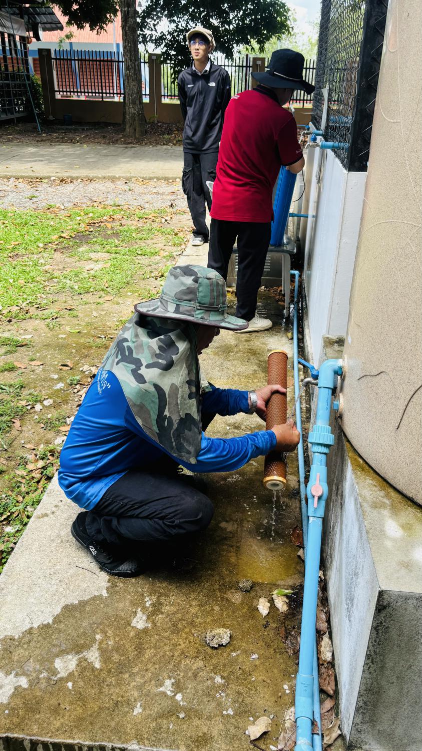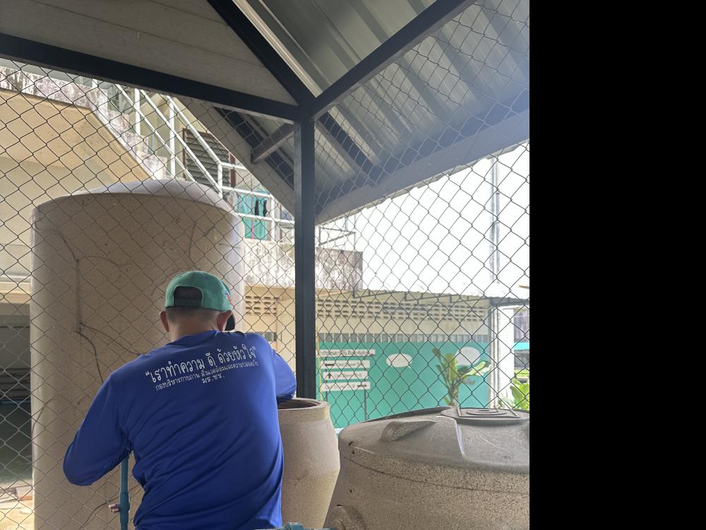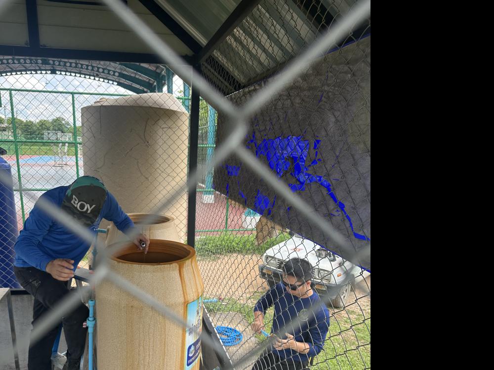 ล้างทำความสะอาดกรองโรงผลิตน้ำดื่มบริเวณด้านในหอพักนักศึกษา