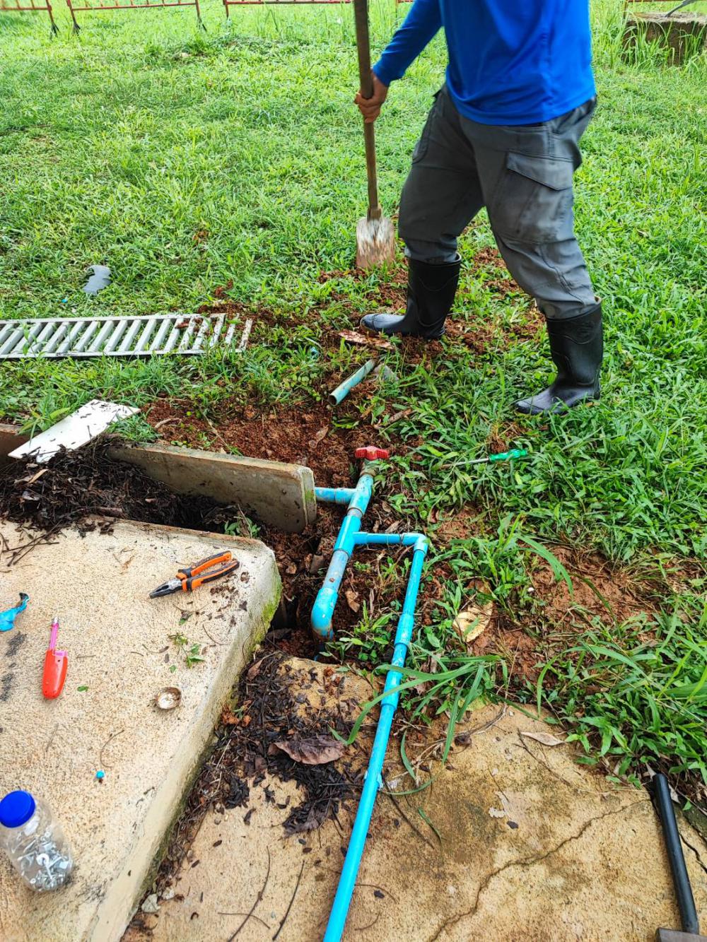ซ่อมท่อเมนน้ำประปาไปป้อมยามประตู 1