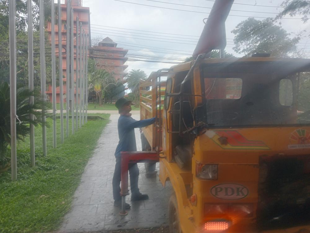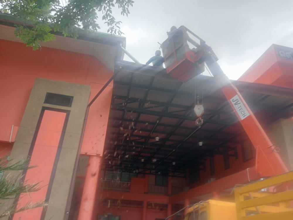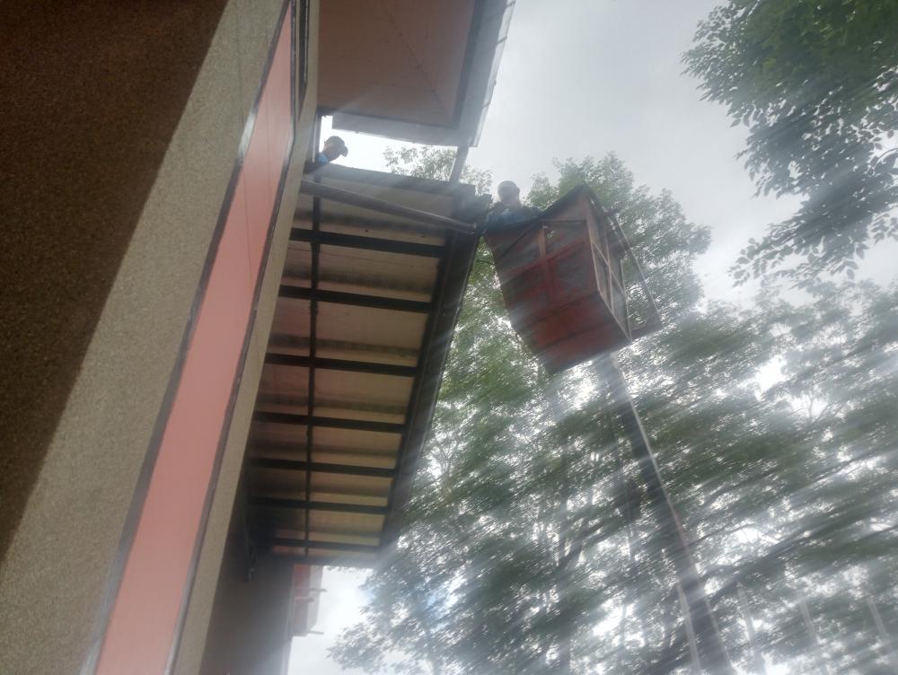 สถาบันภาษาฯ ตรวจสอบและซ่อมแซมรางระบายน้ำอาคารสถาบันภาษา แจ้งว่ารางระบายน้ำตันทำให้น้ำล้นจากรางระบายน้ำ