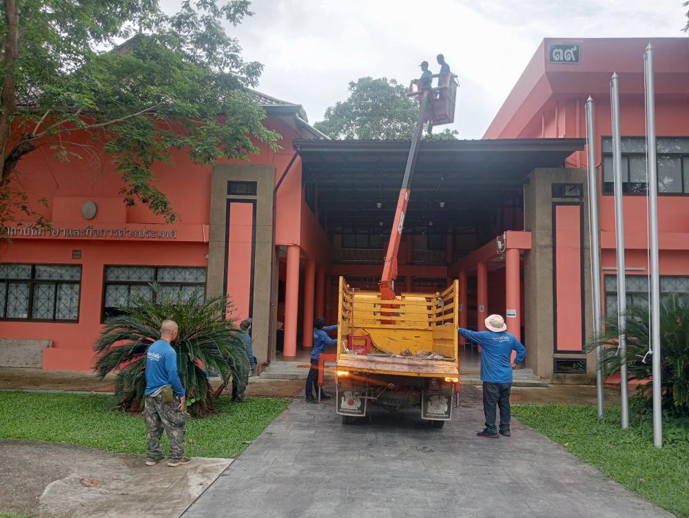ตรวจสอบและซ่อมแซมรางระบายน้ำอาคารสถาบันภาษา