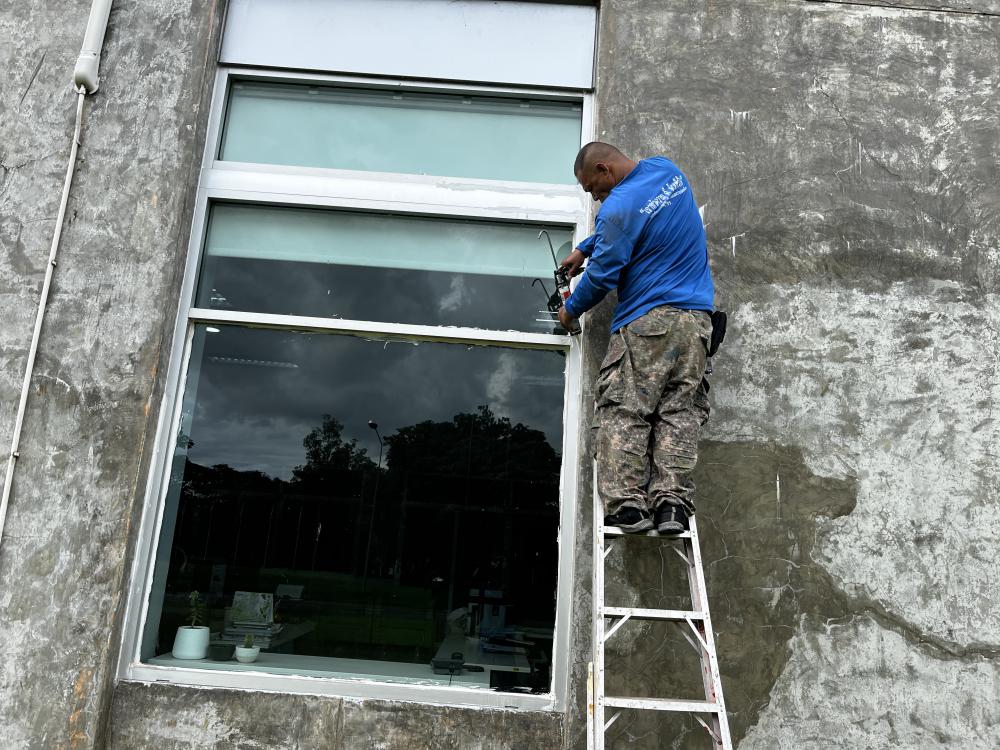 ตรวจสอบและซ่อมแซมผนังห้องสำนักงานกองการสื่อสารองค์กรฯ