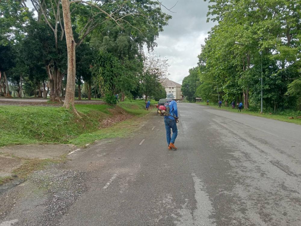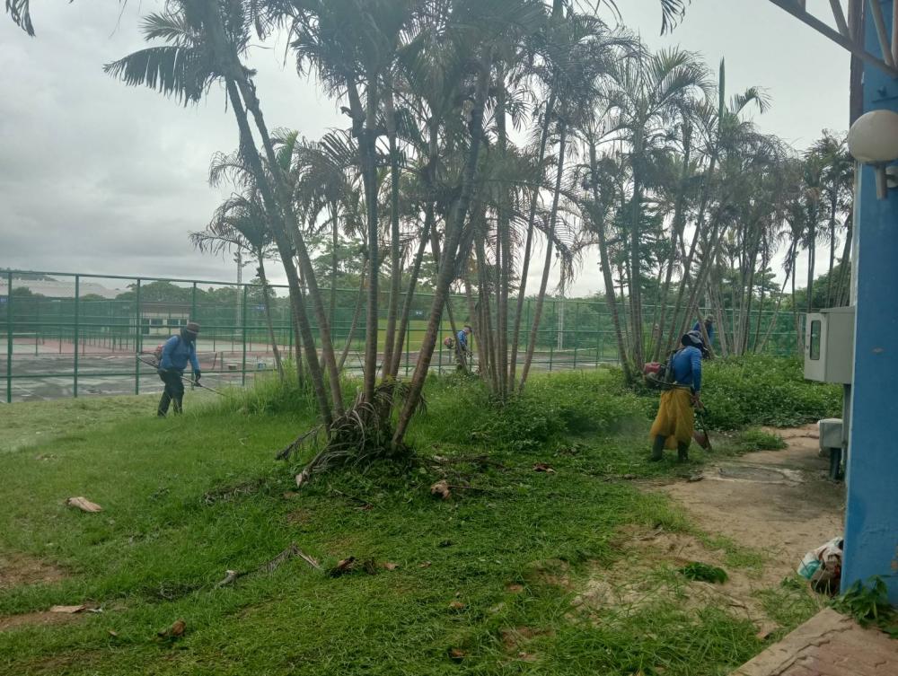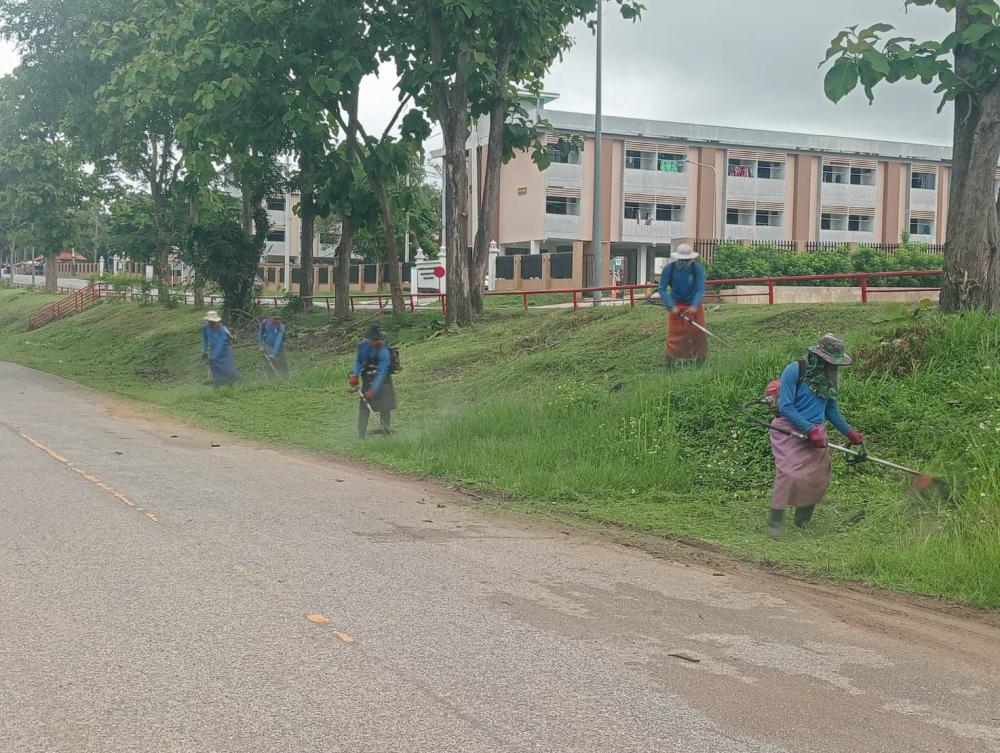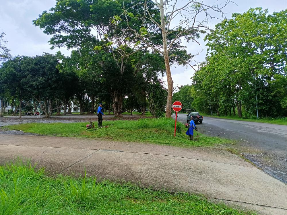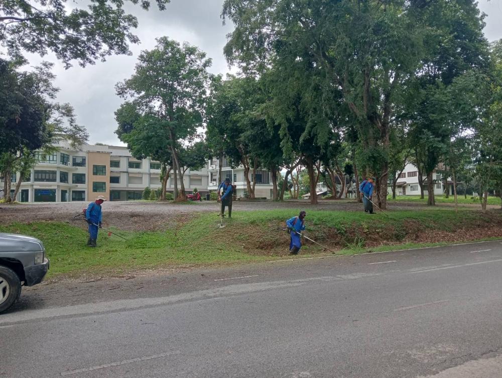 กองบริหารกายภาพฯ ตัดหญ้าสระว่ายน้ำโรงยิมคณะครุศาสตร์และบ้านพักบุคลากร