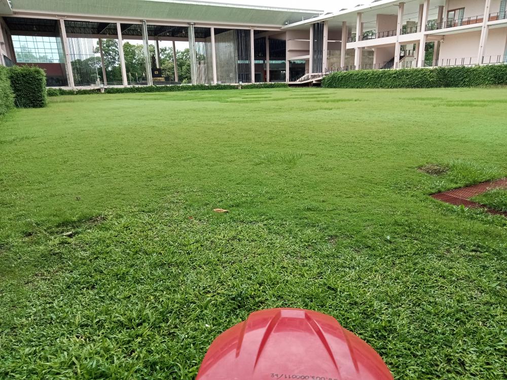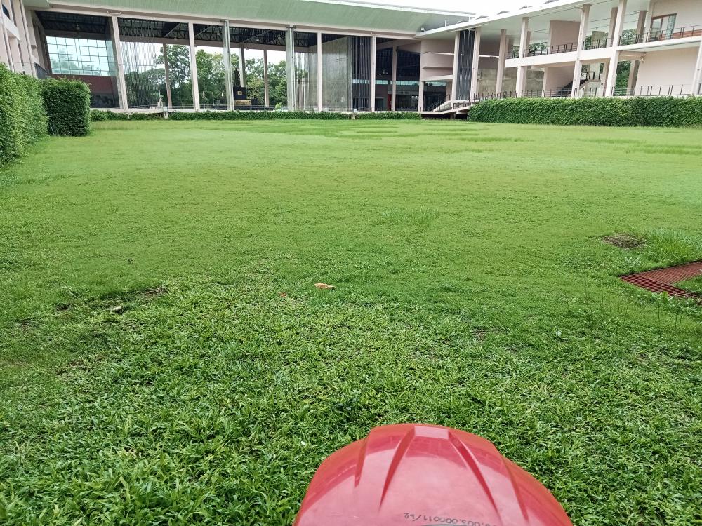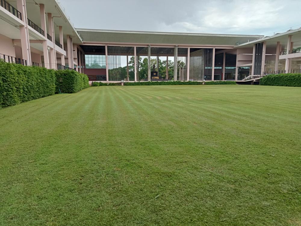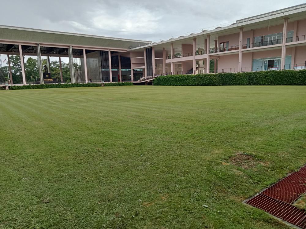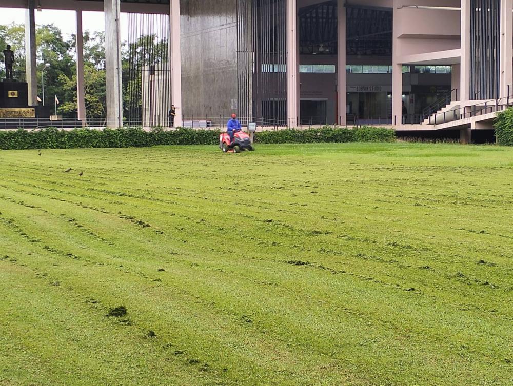 กองบริหารกายภาพฯ ตัดหญ้าตึกบริหารงานกลาง