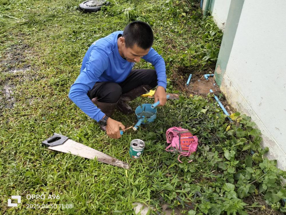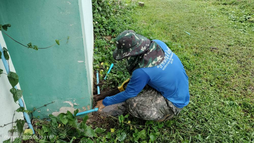 ตรวจสอบและซ่อมแซมท่อน้ำประปา บริเวณโรงยิมเนเซียม