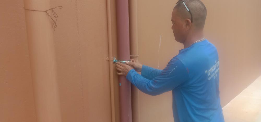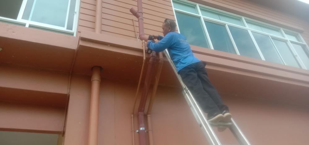 ตรวจสอบและซ่อมแซมท่อระบายน้ำรางริน และ ติดตั้งกุญแจล็อคตู้