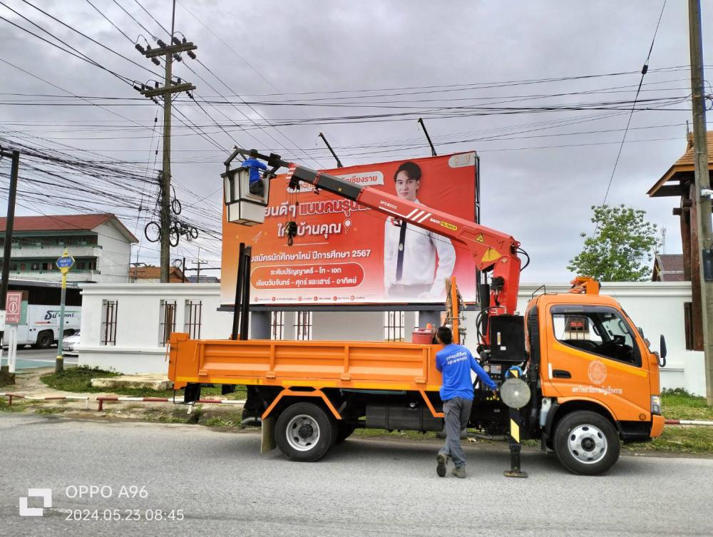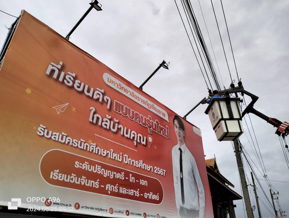 กองบริหารกายภาพฯ ติดตั้งสปอร์ตไลท์ส่องป้ายหน้ามหาวิทยาลัย