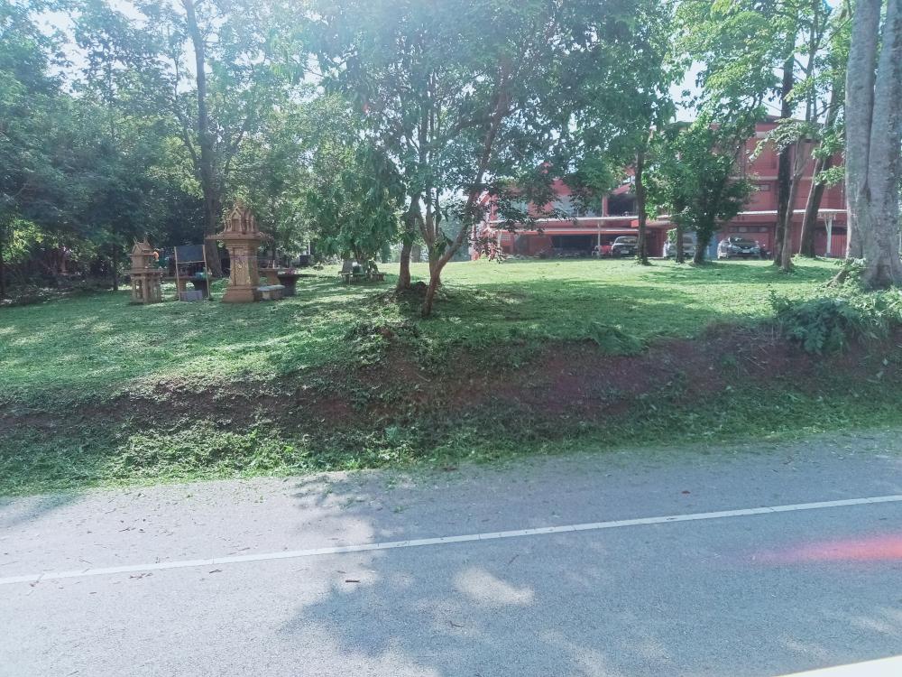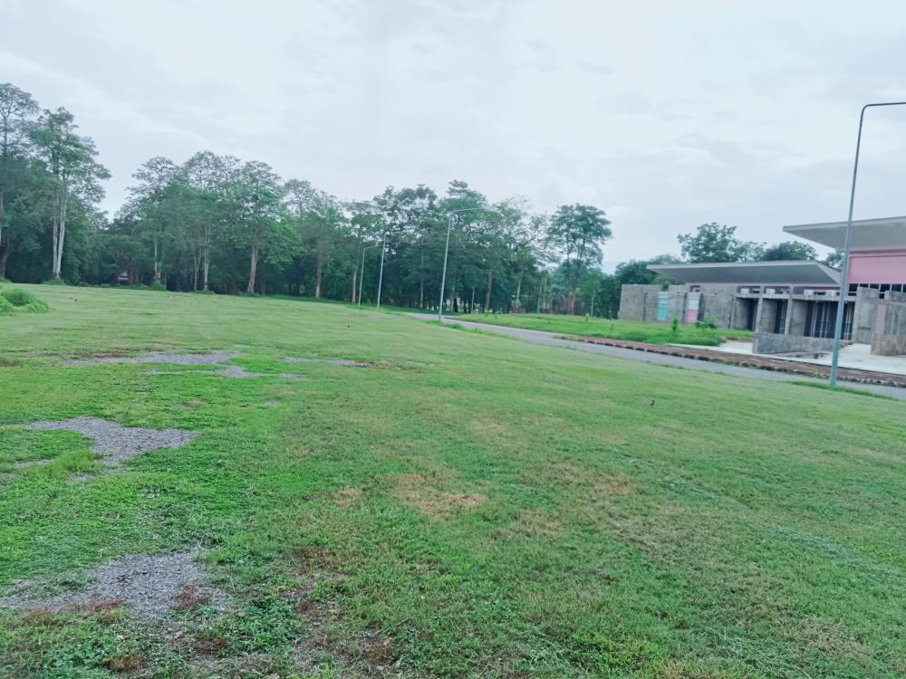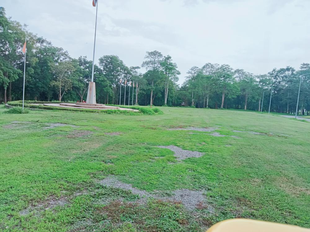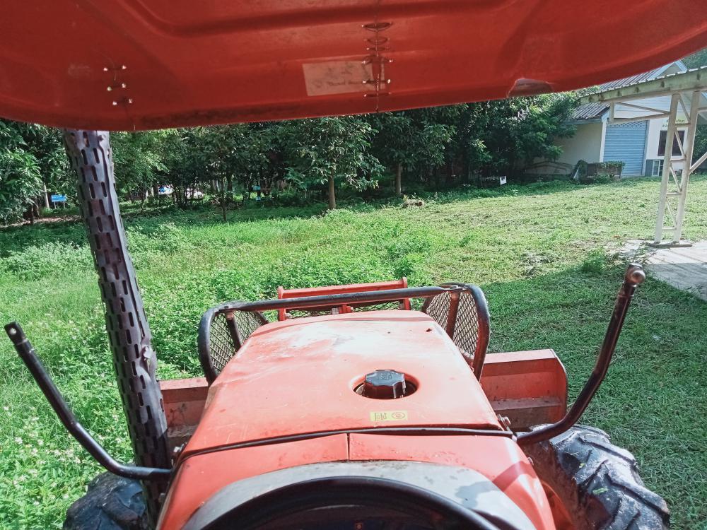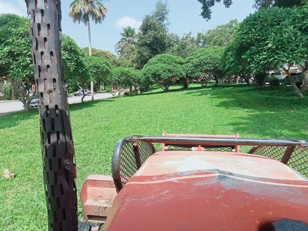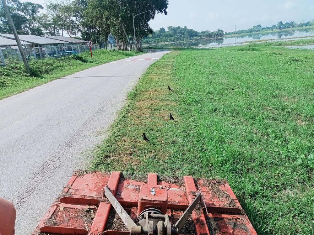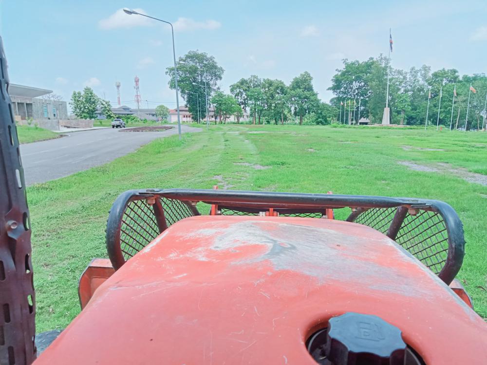 กองบริหารกายภาพฯ ขับรถแทรกเตอร์ตัดหญ้า ทางเข้าประตู 3 ตึกนิติศาสตร์โดยรอบ หน้าเสาธง