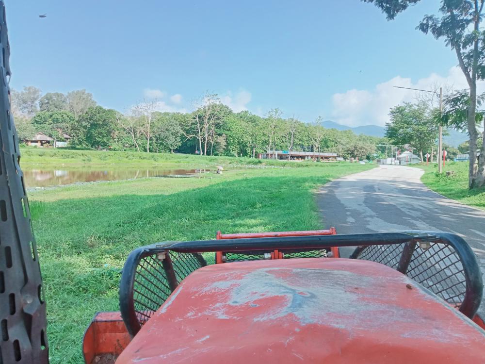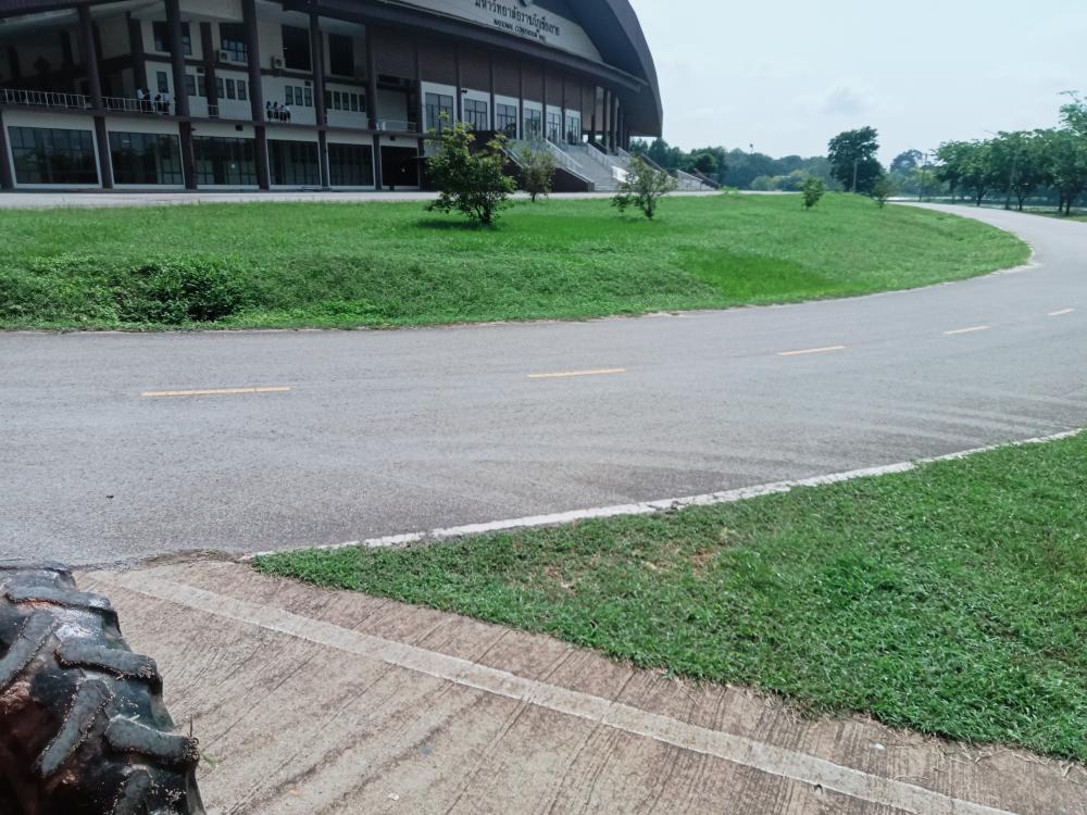 ขับรถแทรกเตอร์ตัดหญ้า ทางเข้าประตู 3 ตึกนิติศาสตร์โดยรอบ หน้าเสาธง
