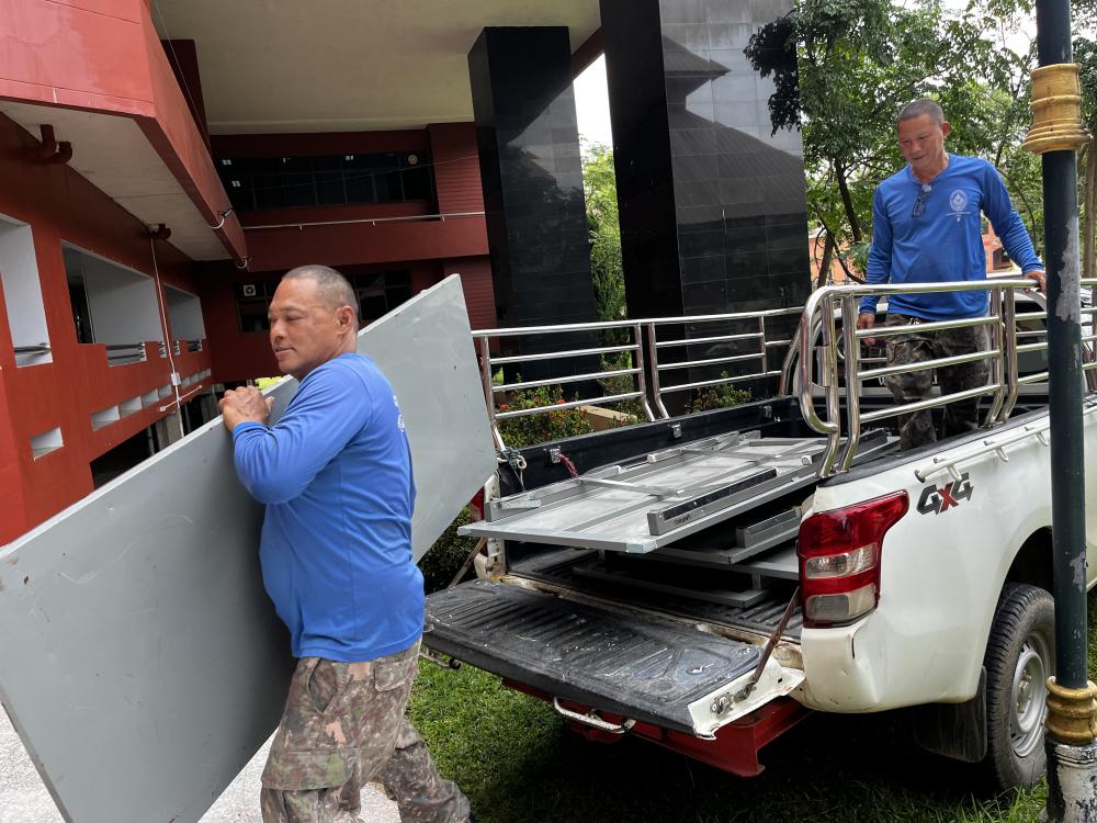 ขนโต๊ะจำนวน 10 ตัวไปห้องพยอม