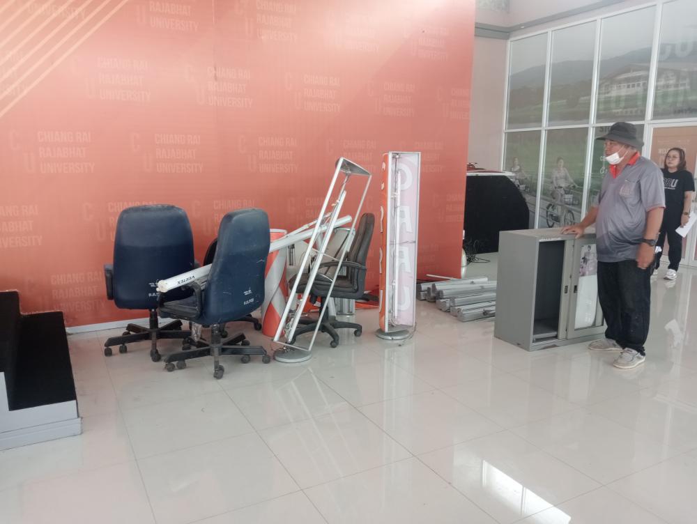 ขนย้ายวัสดุอุปกรณ์ที่ชำรุดไม่สามารถใช้งานได้ บริเวณห้องสตูดิโอถ่ายภาพ