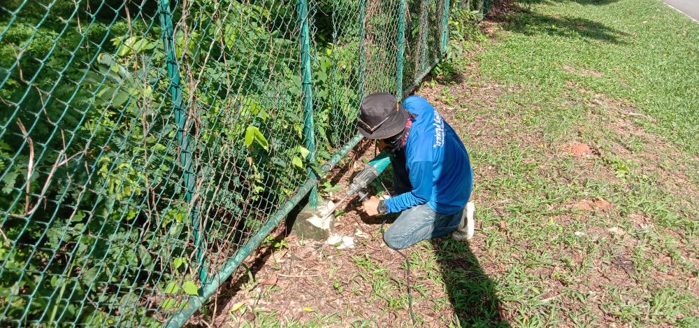 รื้อถอนรั้วเหล็กทางเข้าตึกพยาบาล