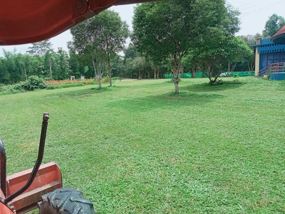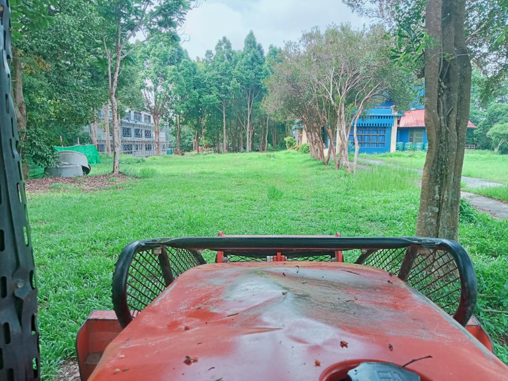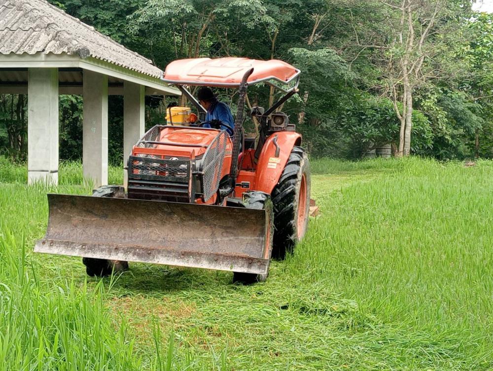 กองบริหารกายภาพฯ ขับแทรกเตอร์ตัดหญ้า รอบหอดูดาว รอบตึกชาติพันธุ์